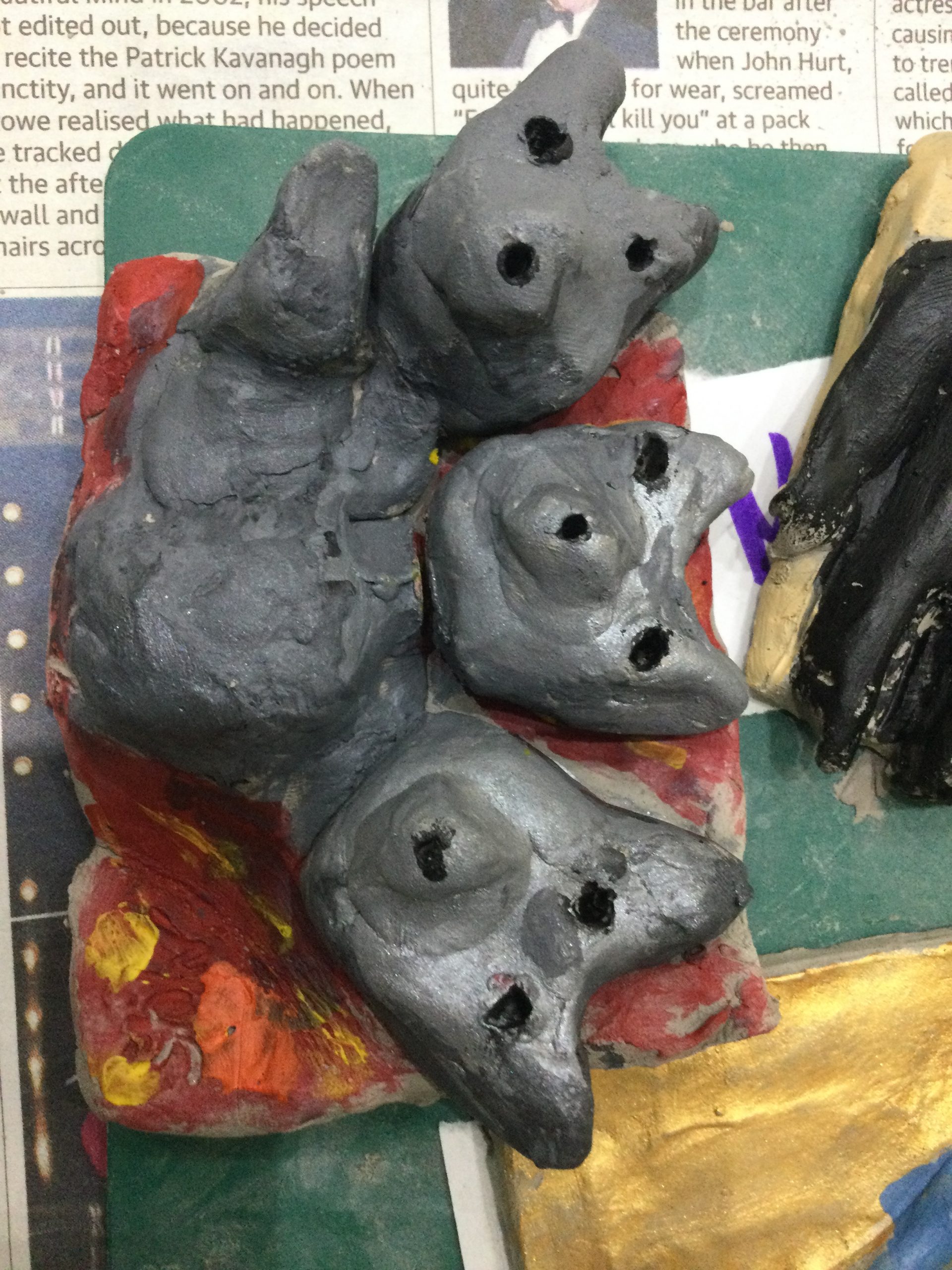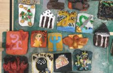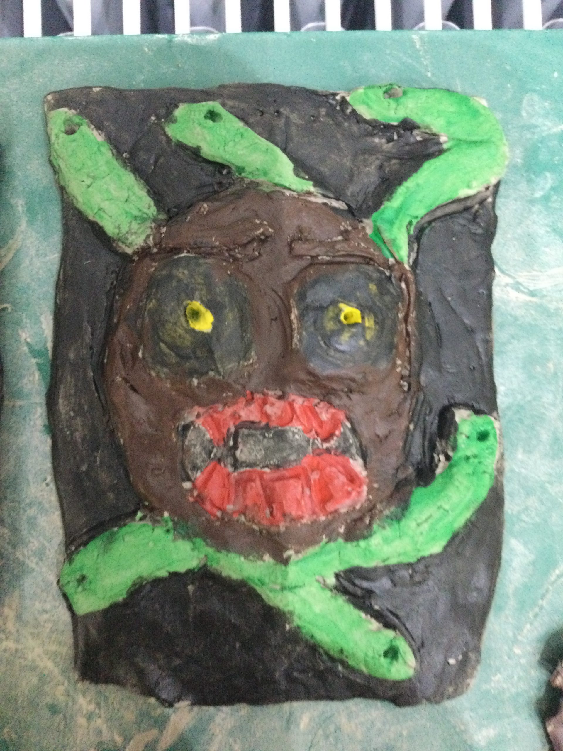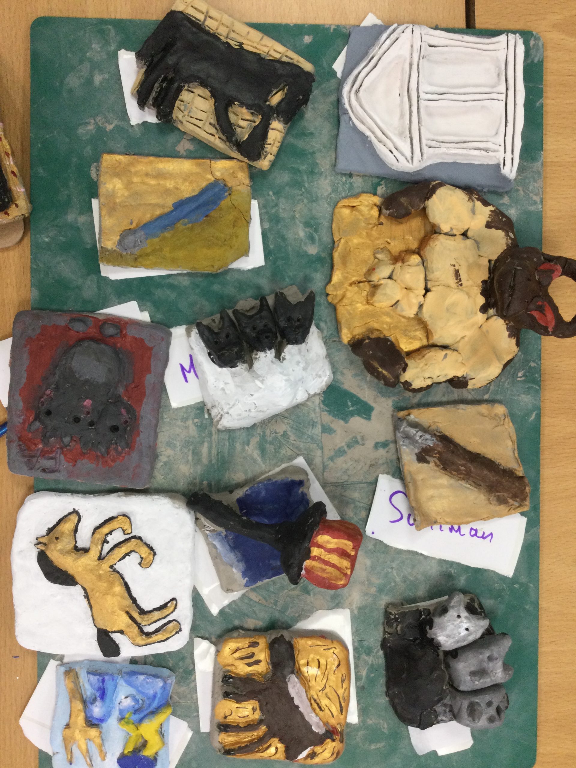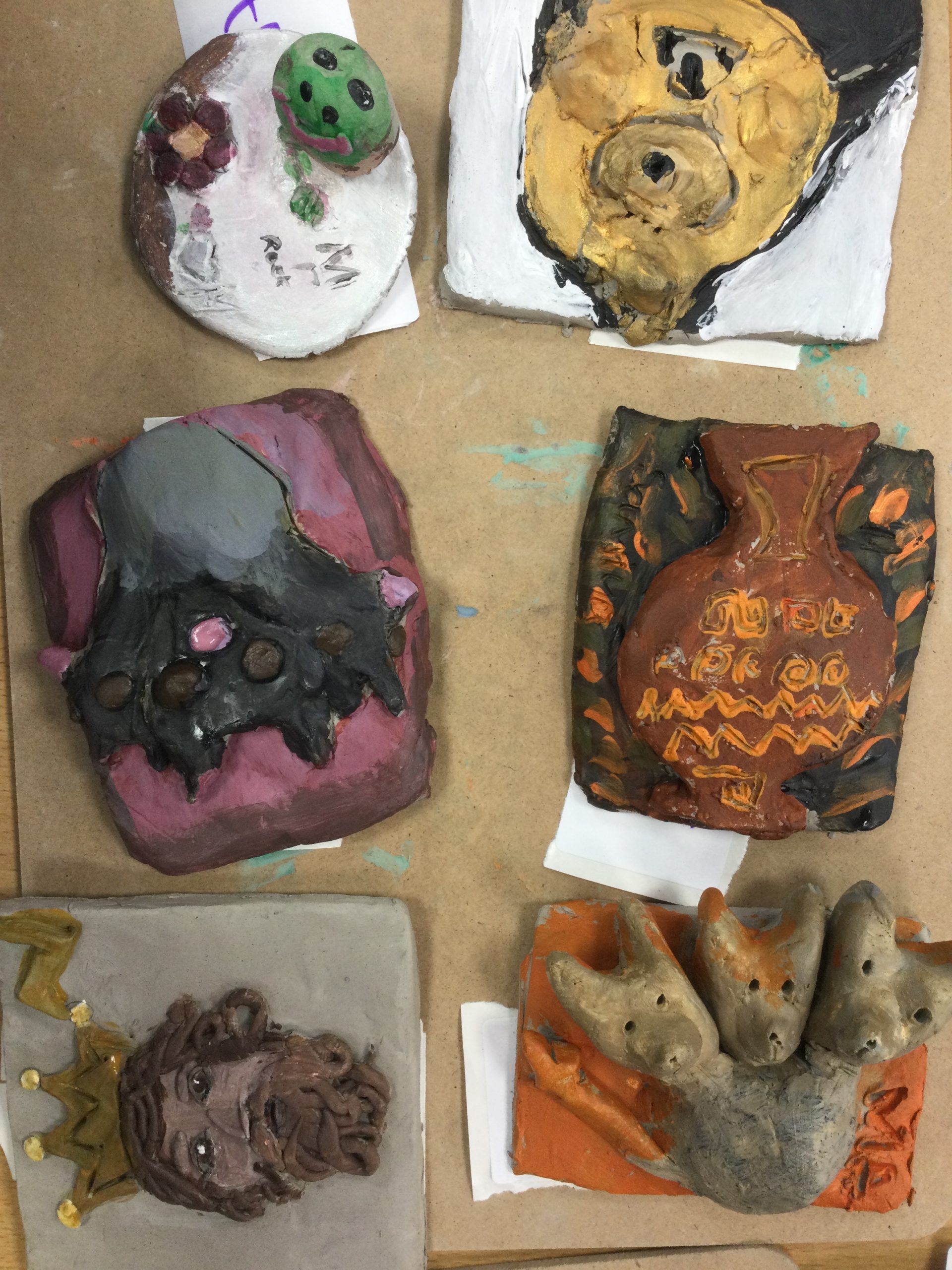 After designing our tiles, we made them out of clay and added the finishing touches of paint/colour today. Can you recognise some famous characters? Odysseus? Athena? Hera? Cerebus? Zeus? Medusa?