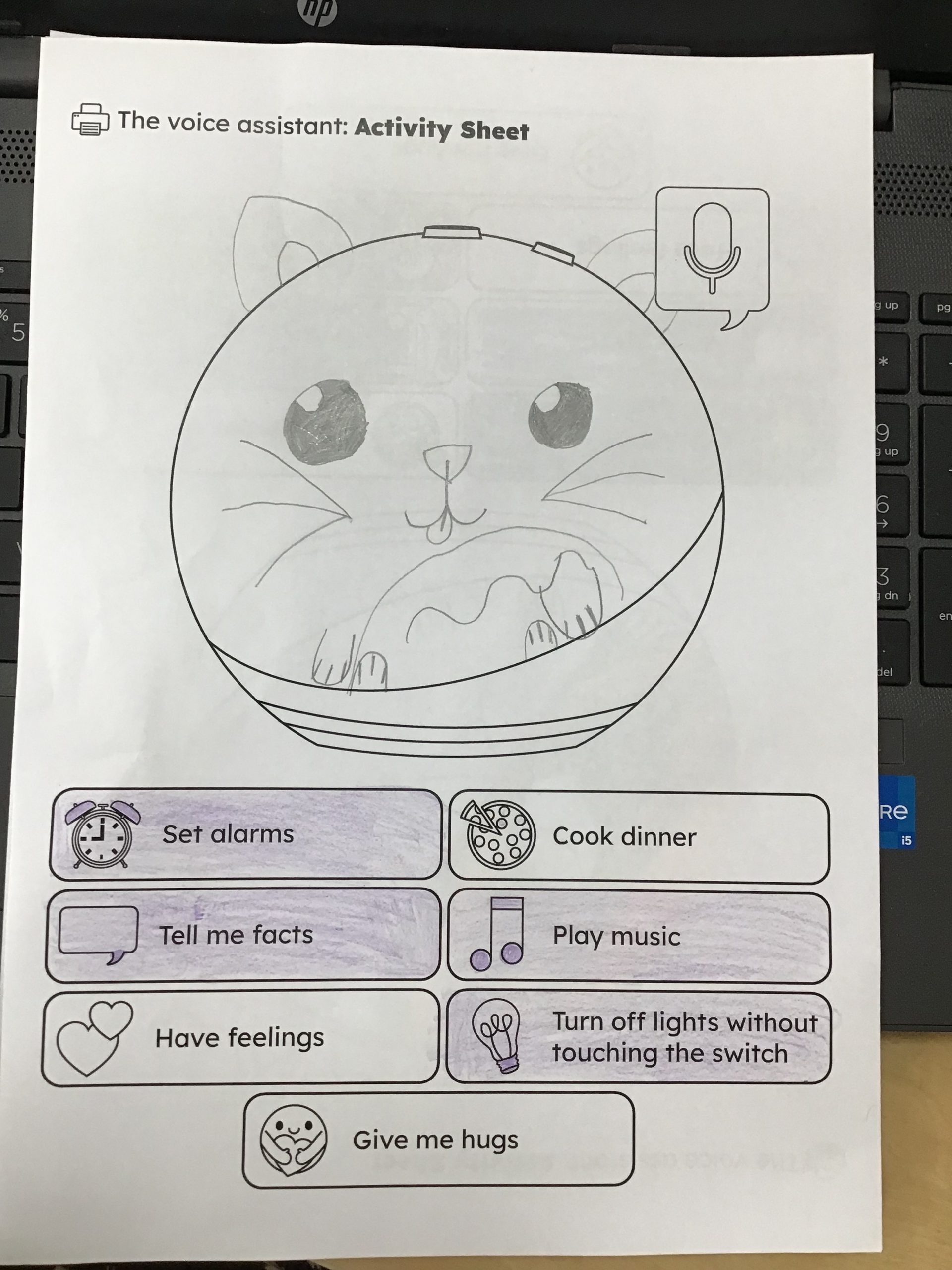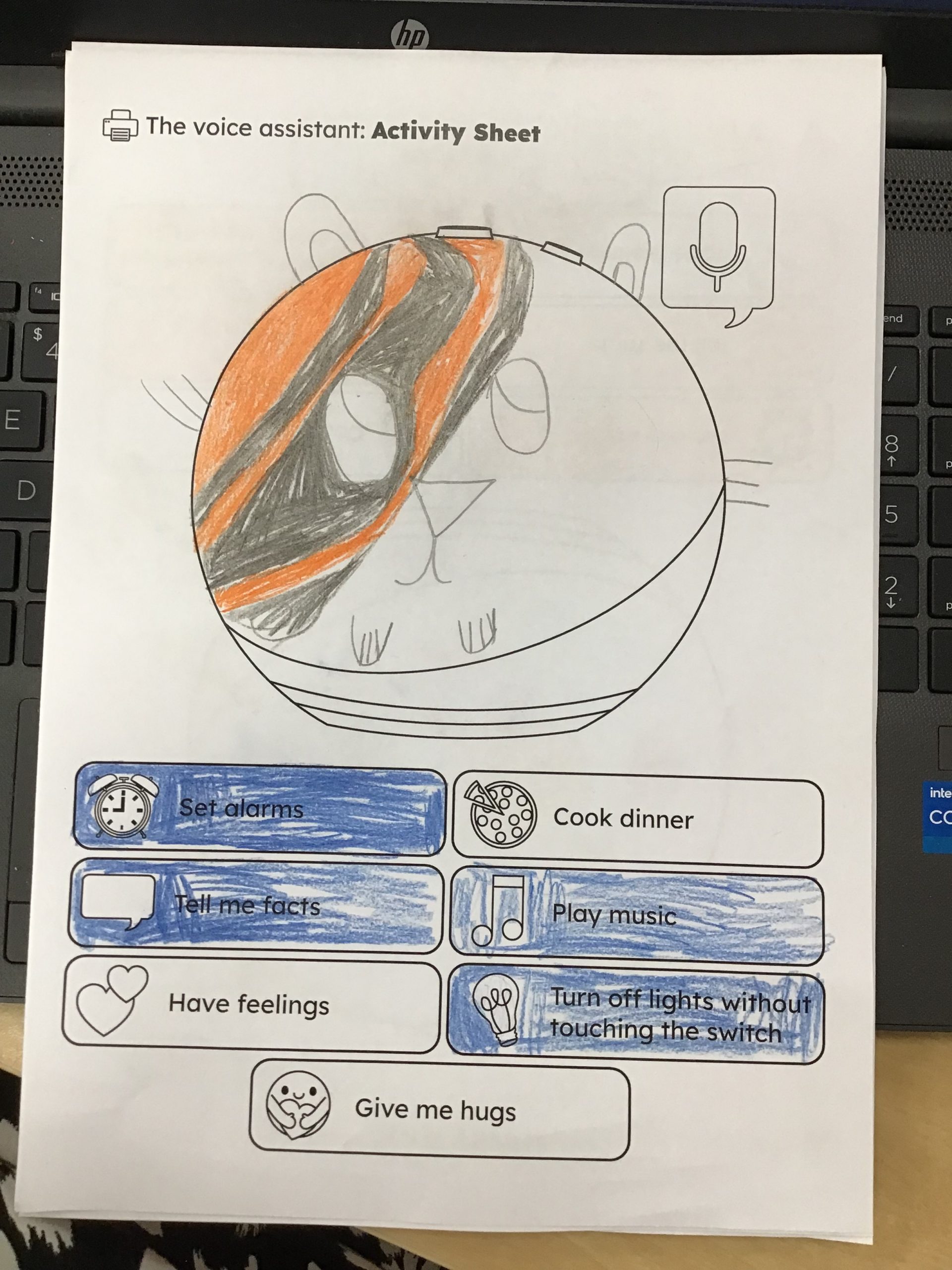 For Safer Internet Day we learnt about voice assistants, which are a type of computer program. We learnt about what they can and can’t do. We then compared to humans and what they can do. The important thing to remember is that voice assistants are not real people.