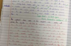 This boy created sentences about the story The Emperor’s New Clothes. A substitution table helped provide support to write different types of sentences. This story contains themes such as vanity and greed as well as humour. We’ve enjoyed reading it together.