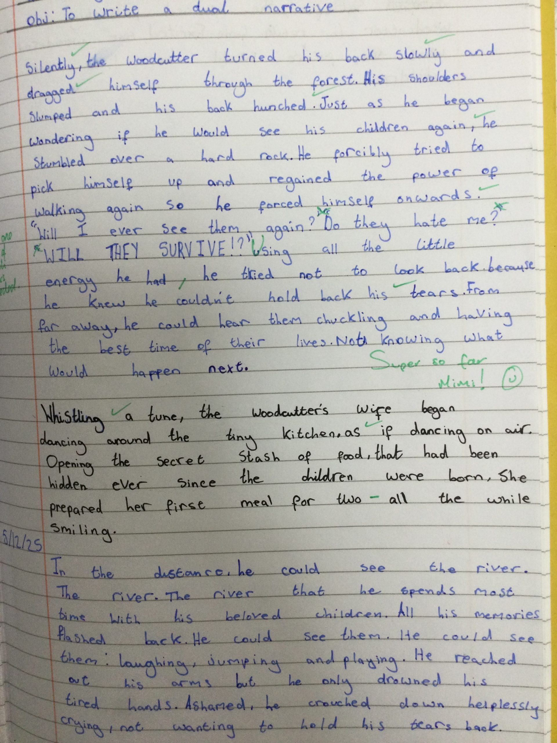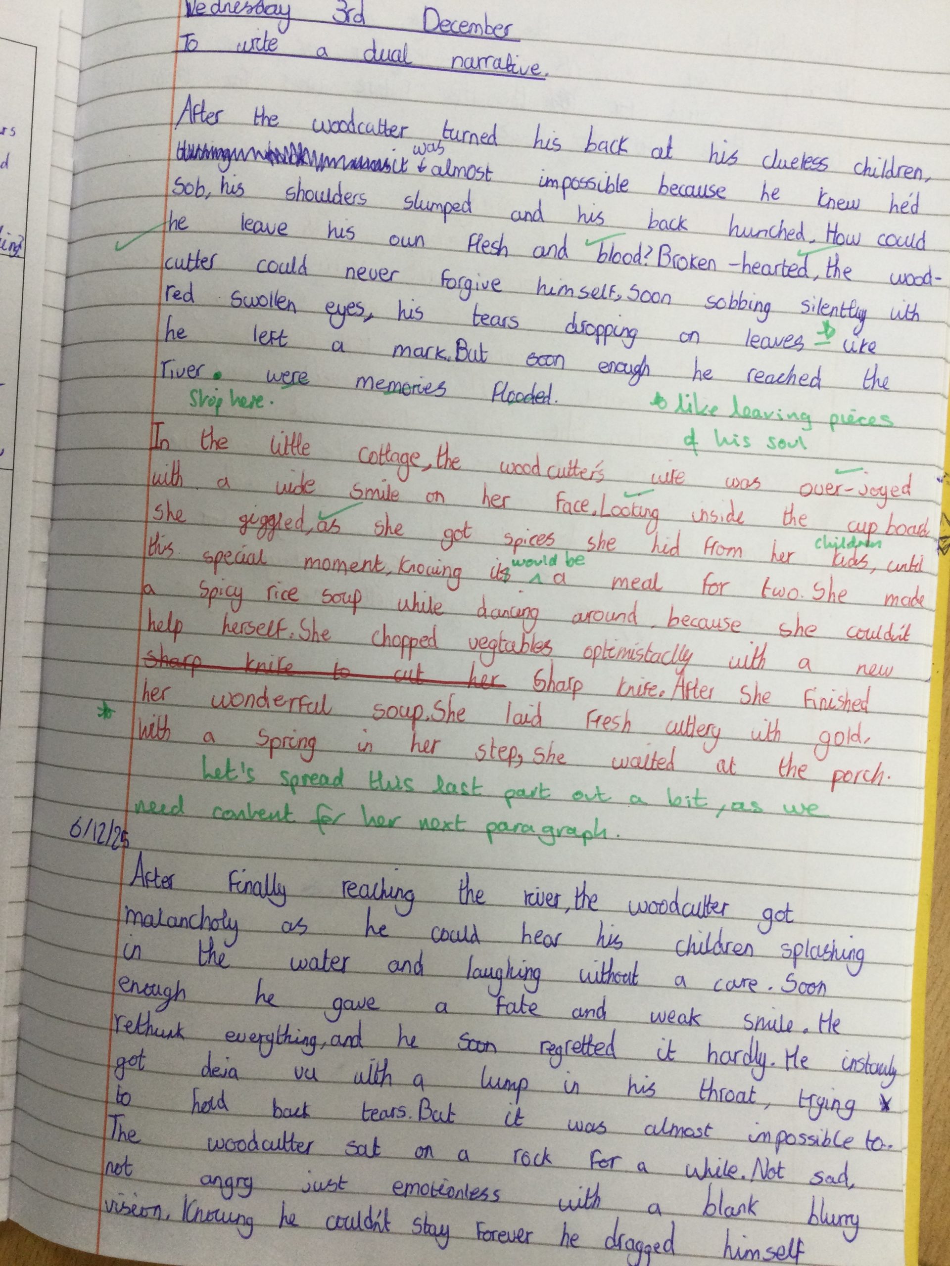 We have just started work on writing our own dual narratives, based on the characters and events in Neil Gaiman’s Hansel and Gretel. Such powerful openings! We can’t wait to get writing more, they will be incredible to read.