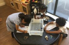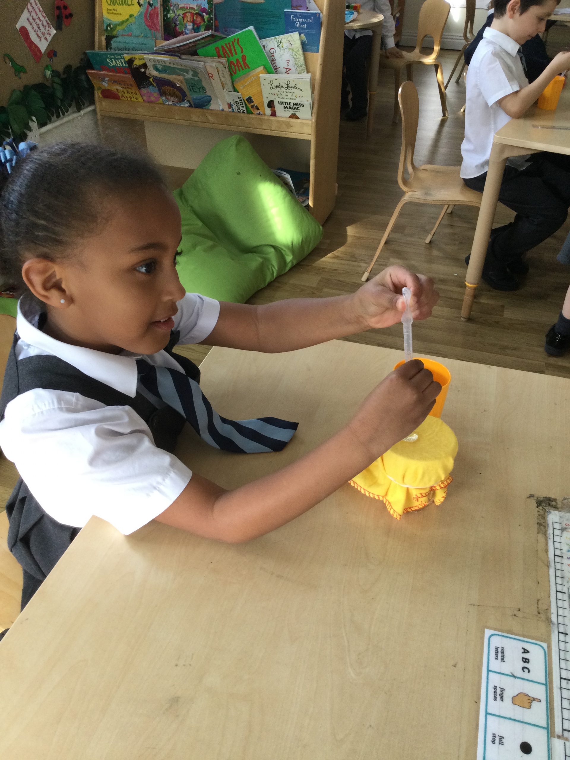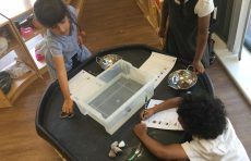 The children had 5 boxes with a different item in each. They had to peer through the hole in the box and make a predication on what the object could be. When more light was added to the box, some objects could be seen a lot easier than others.