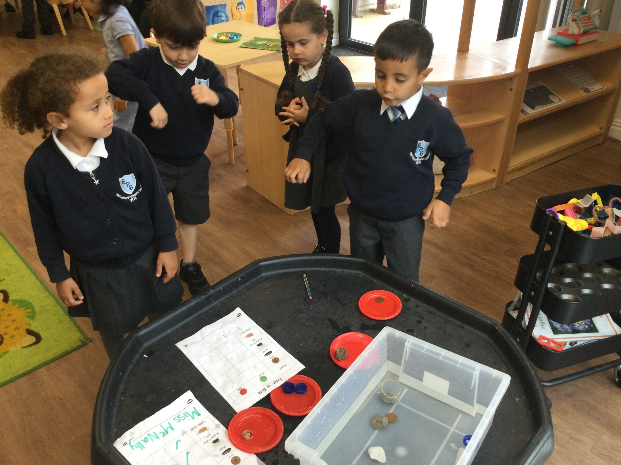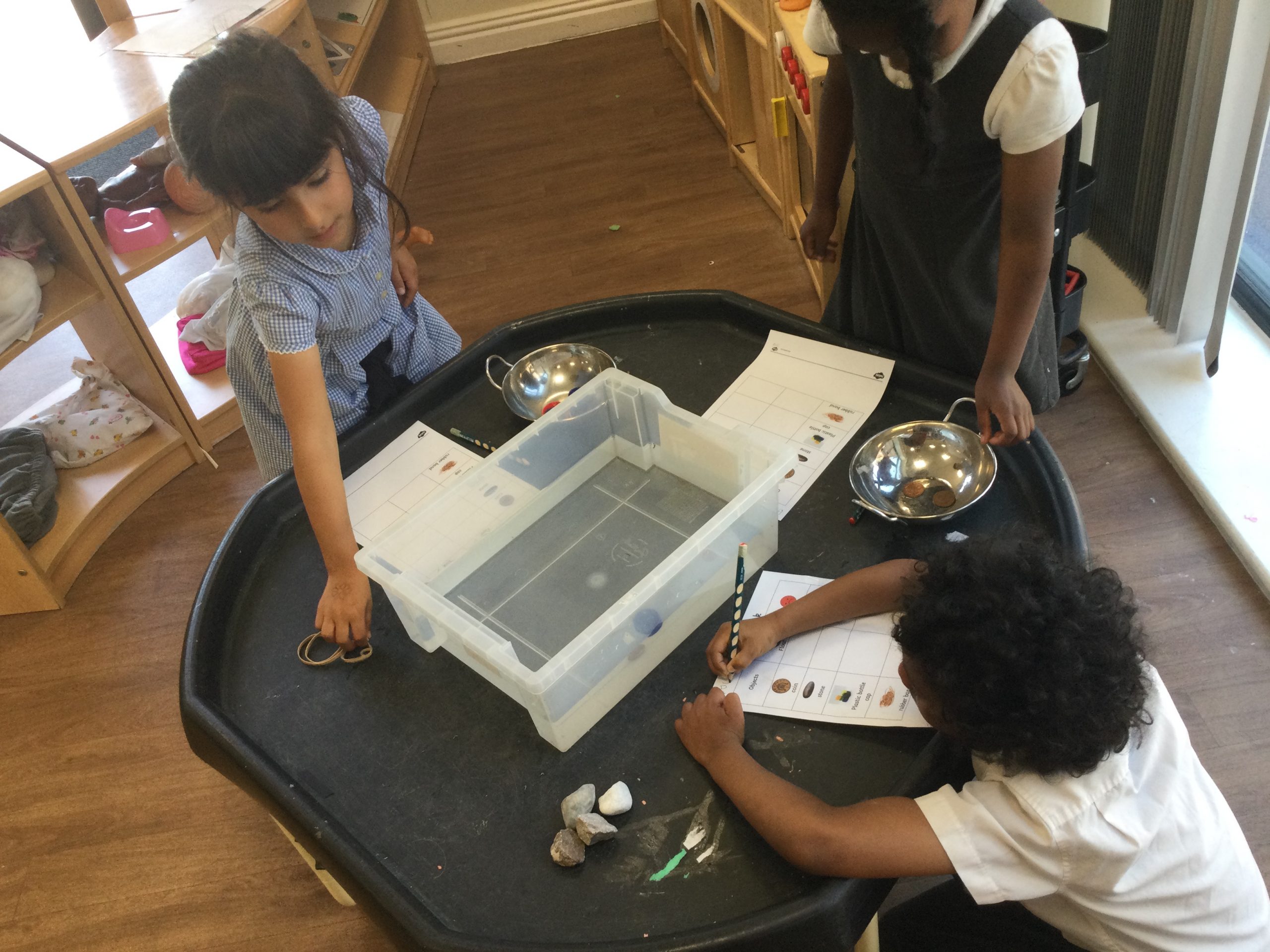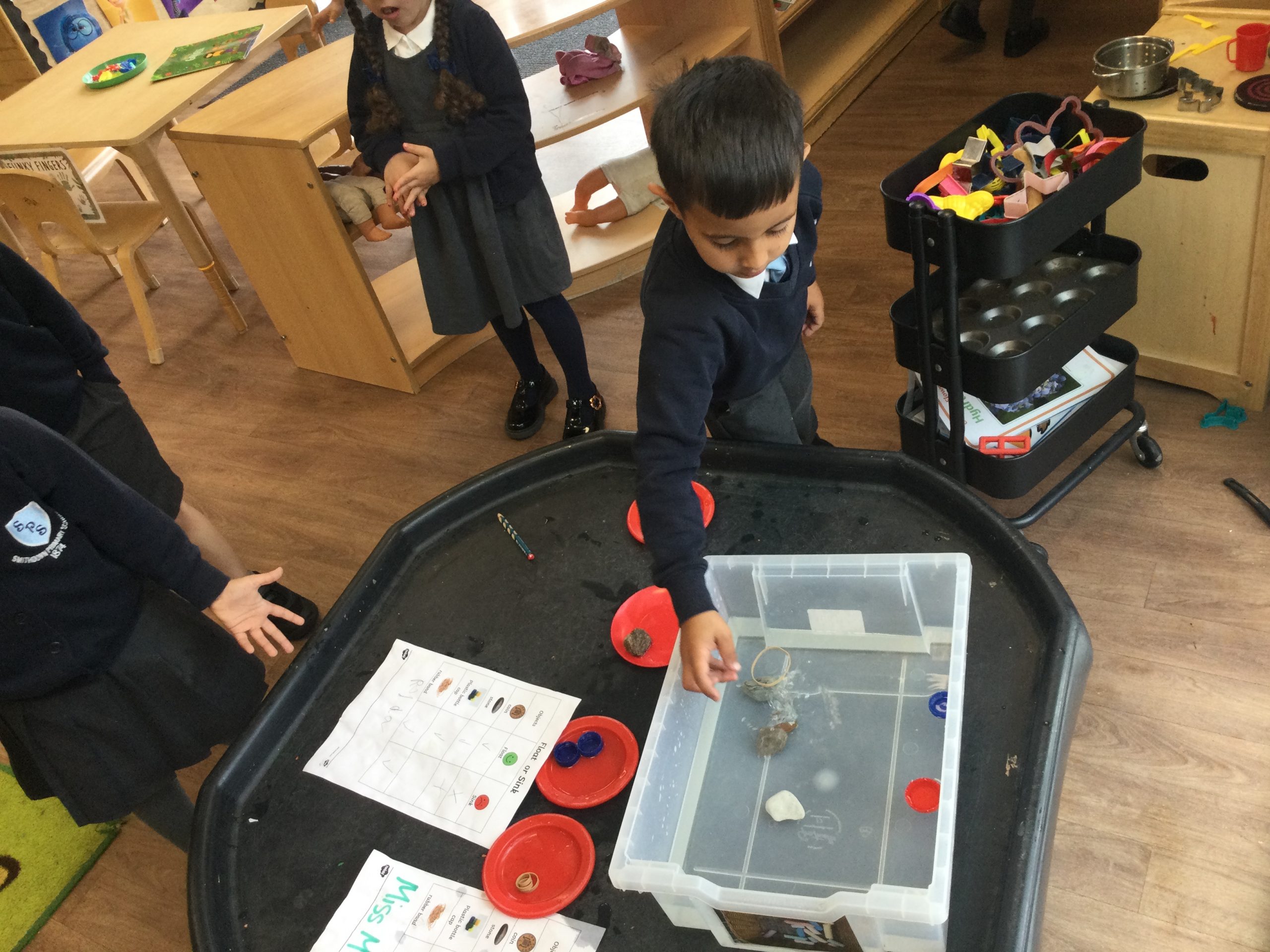 This week, we worked scientifically by sorting and classifying different types of rocks. We explored the rocks and discussed their characteristics. The children came up with great words such as ‘rough’ ‘bumpy’ ‘smooth’ ‘sharp’