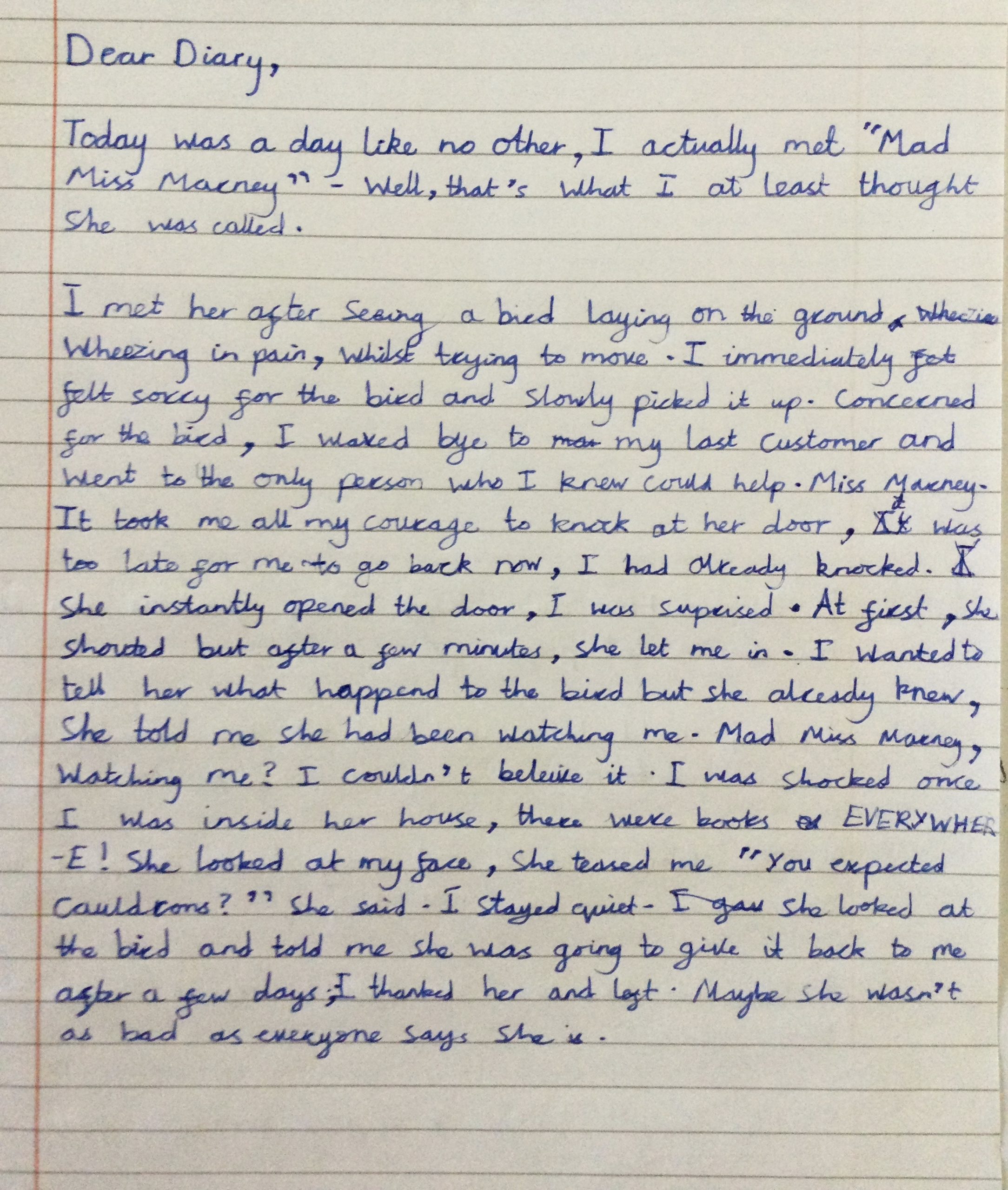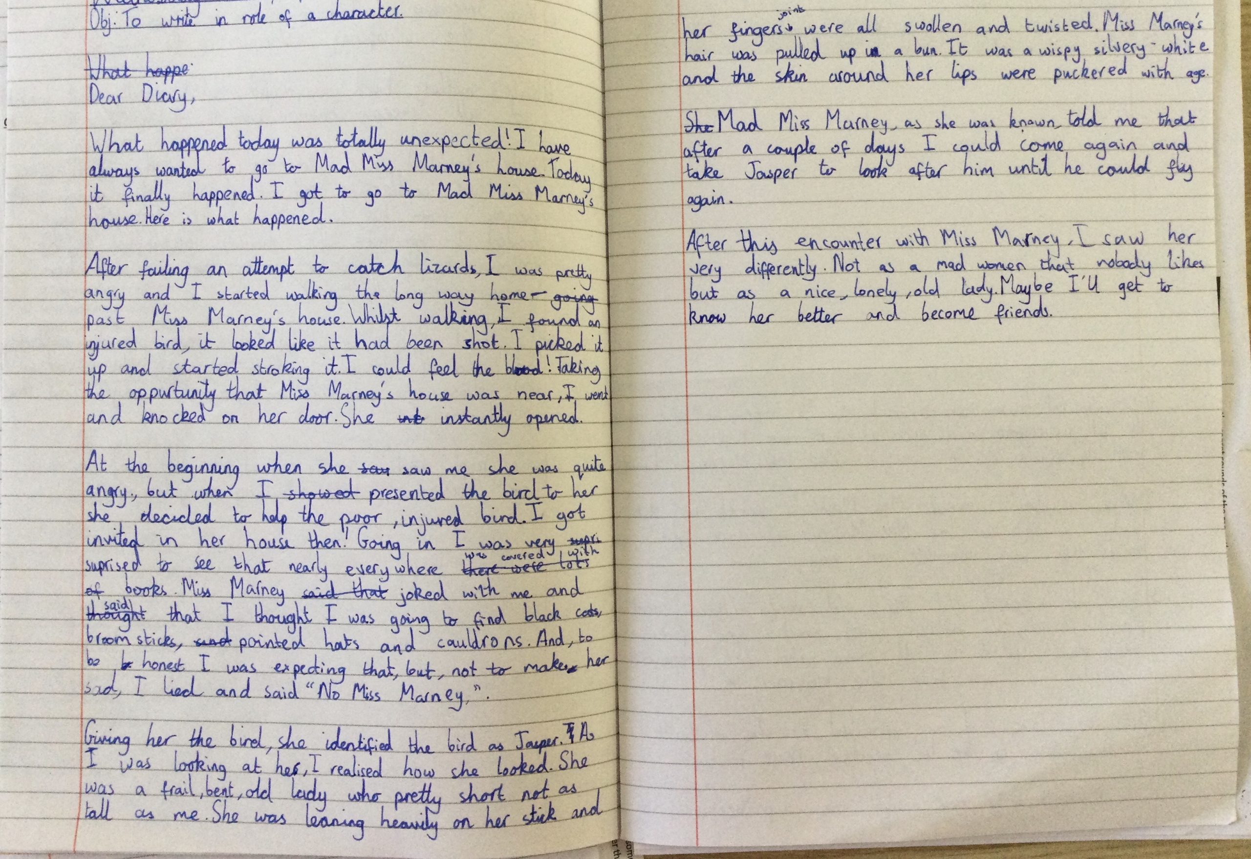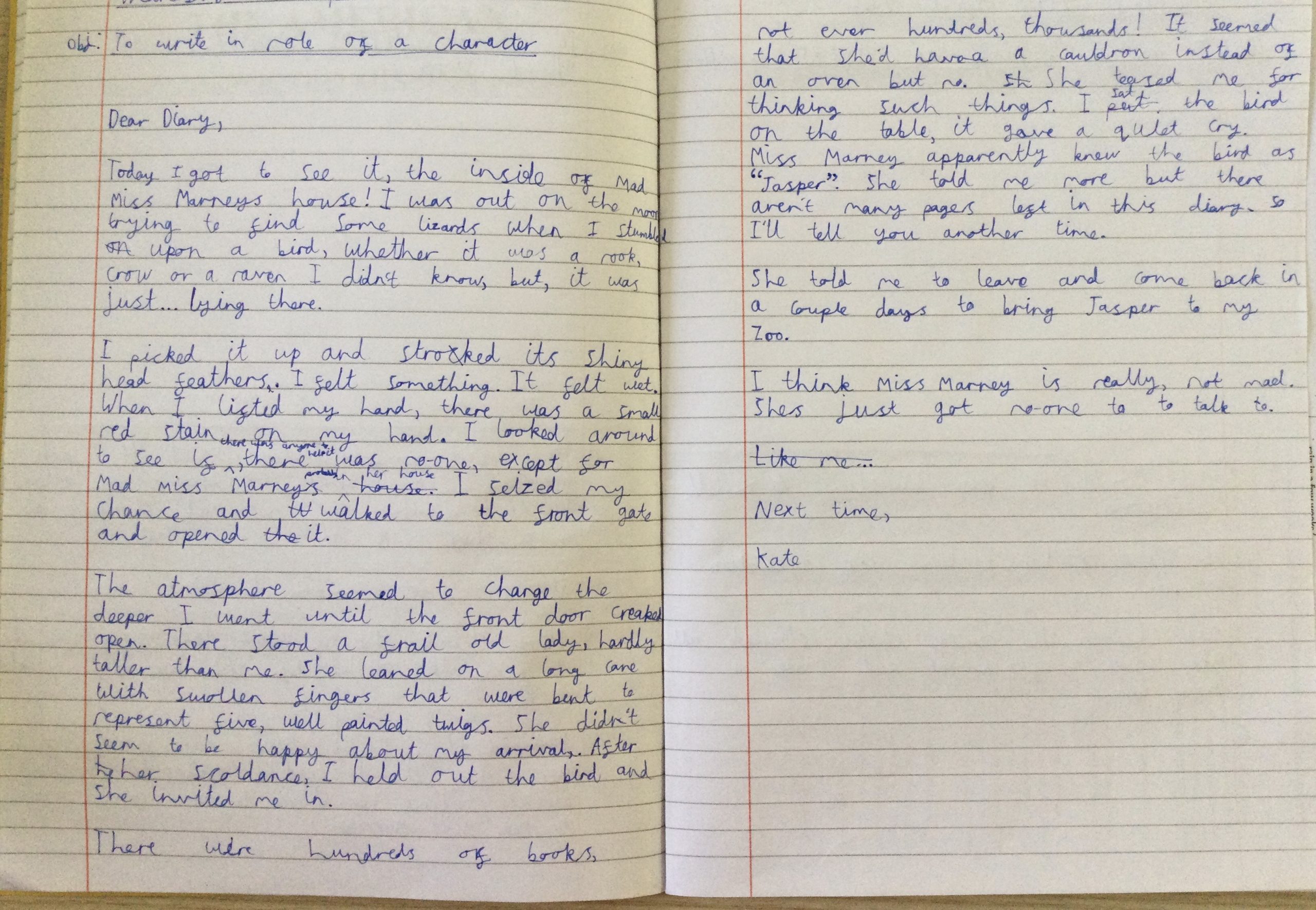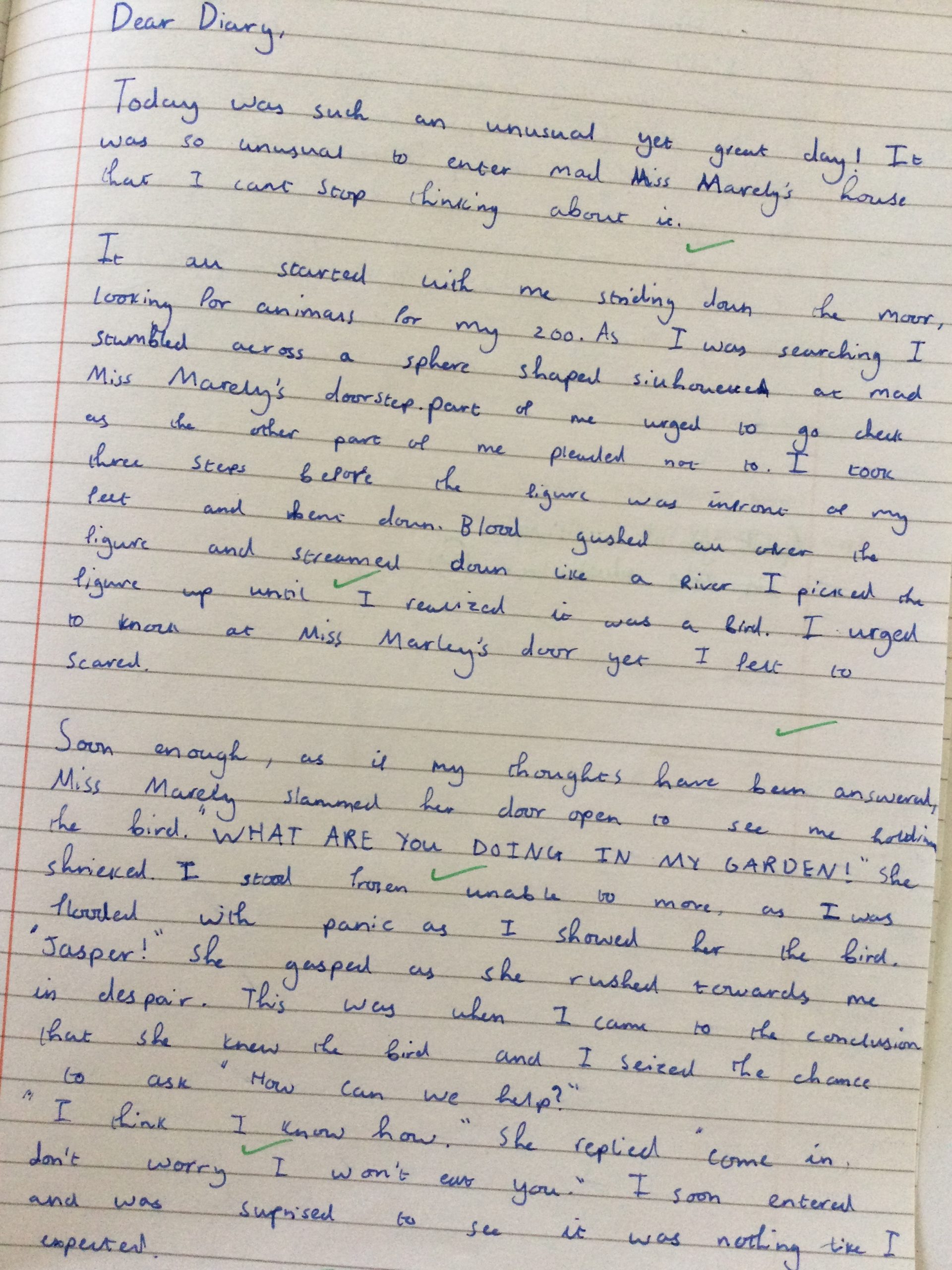 Before we begin writing our own diary extracts, we read and annotated a model text for language and organisational features.