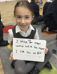 We have been exploring our new character’s feelings and how they have changed through the book. Marcy started off excited for an adventure but quickly changed to fear and worry when it went dark and she reached the cave.