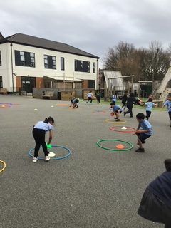 We have worded hard on our pass and move skills today and then applied our new skills into a game of handball with James from Everton in the Community.
