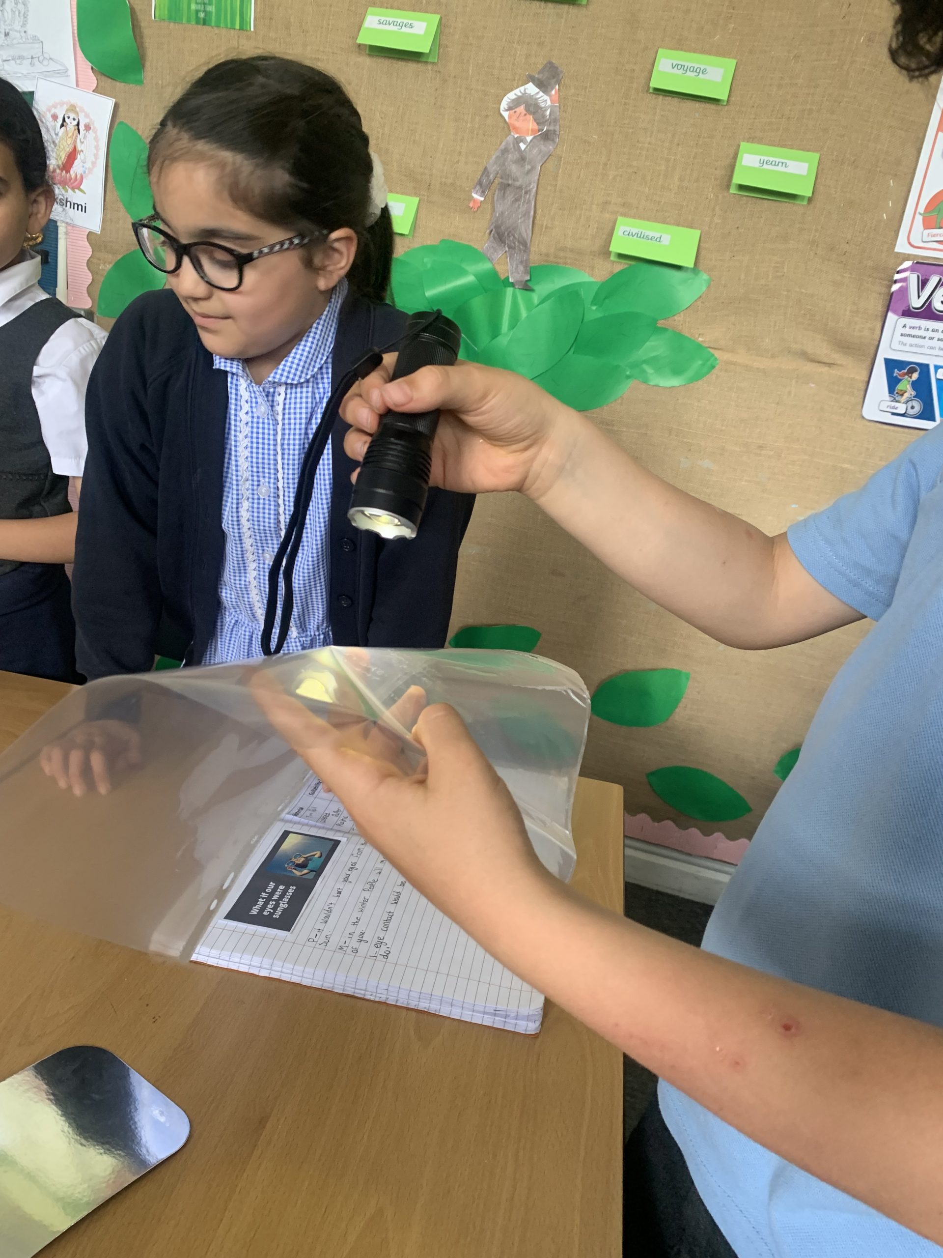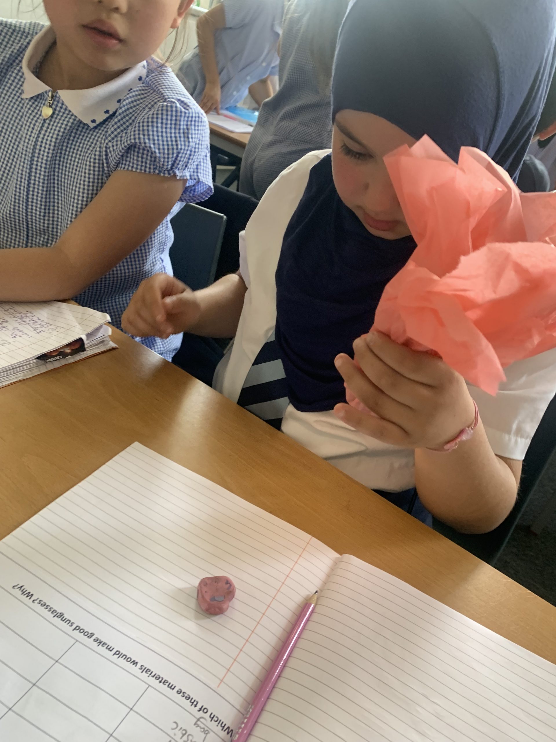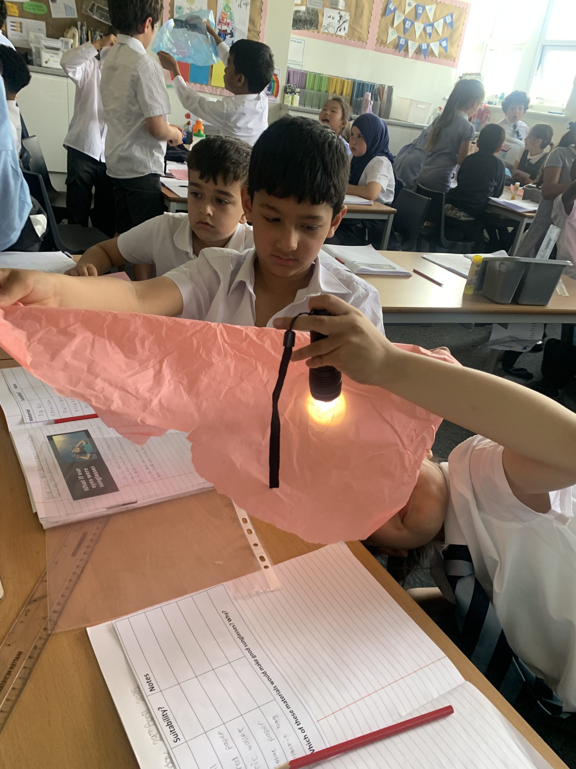 3KMc have been exploring different materials to decide which ones would be most suited to creating sunglasses. We applied our knowledge of sun protection and new vocabulary words we have learned during our Light topic.