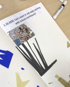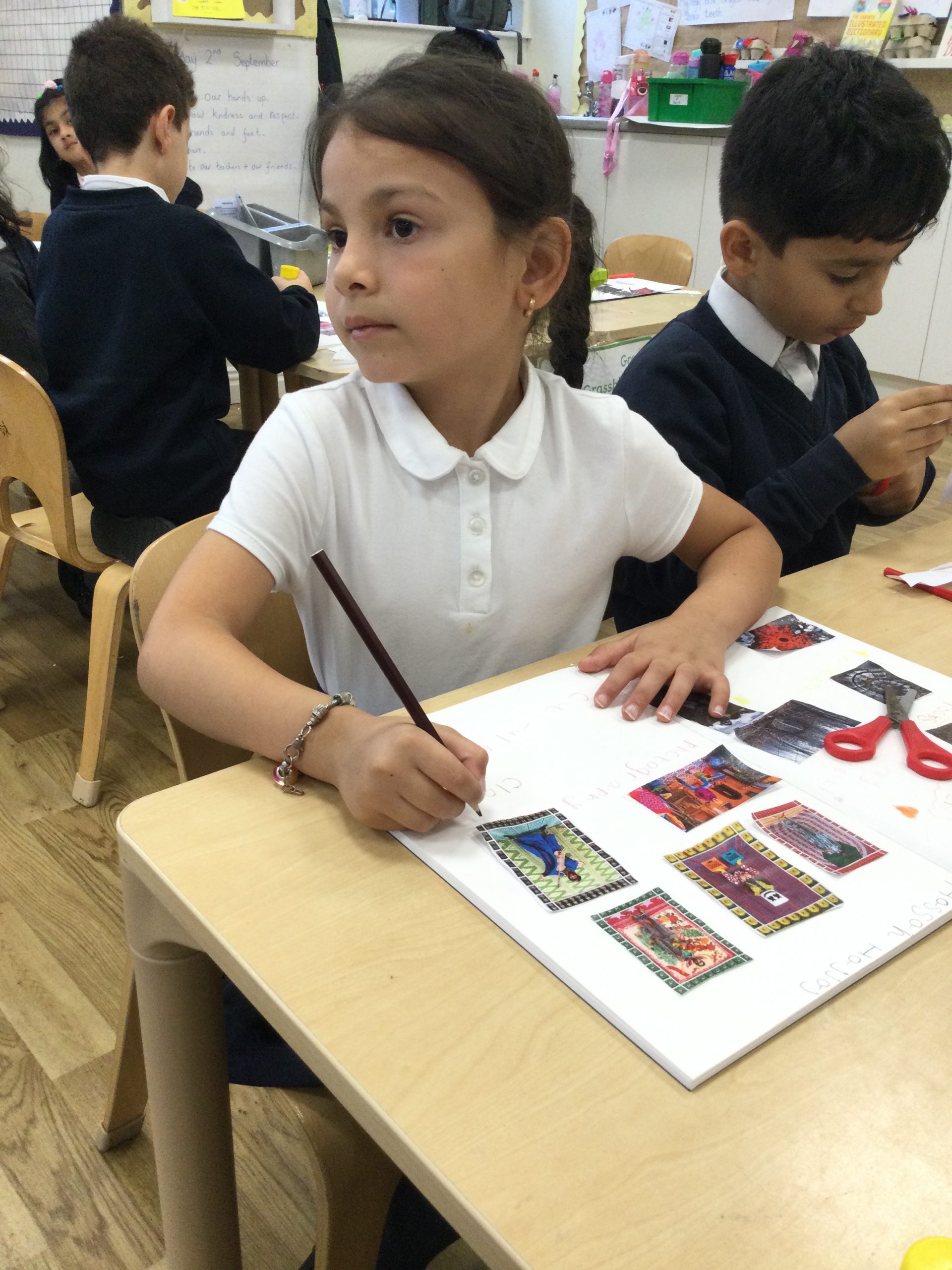 We have looked at sketching parts of a chosen picture to focus in on different sections. We are getting ready for next week, when we’ll be recreating our chosen picture using the painting with scissors technique.