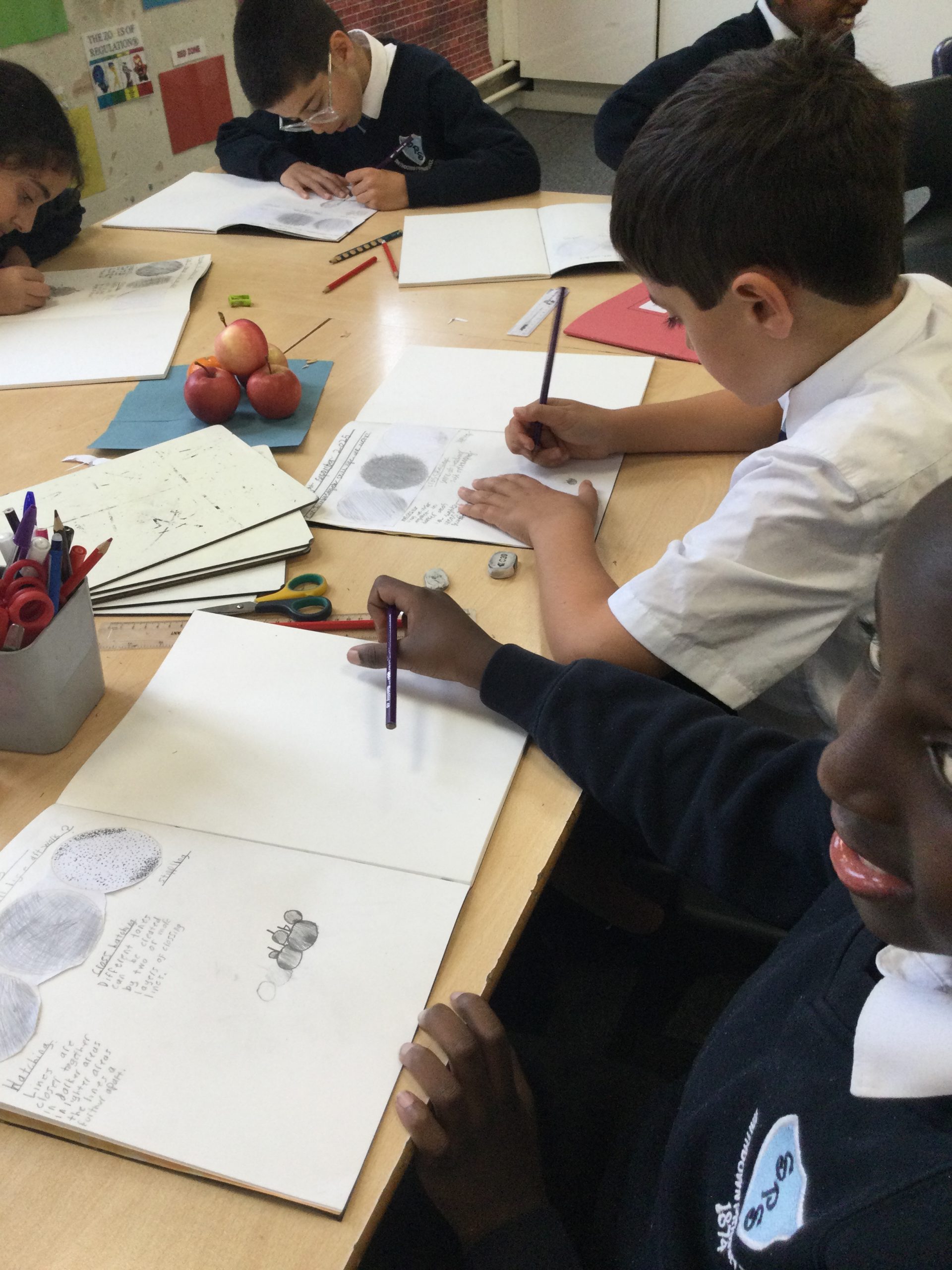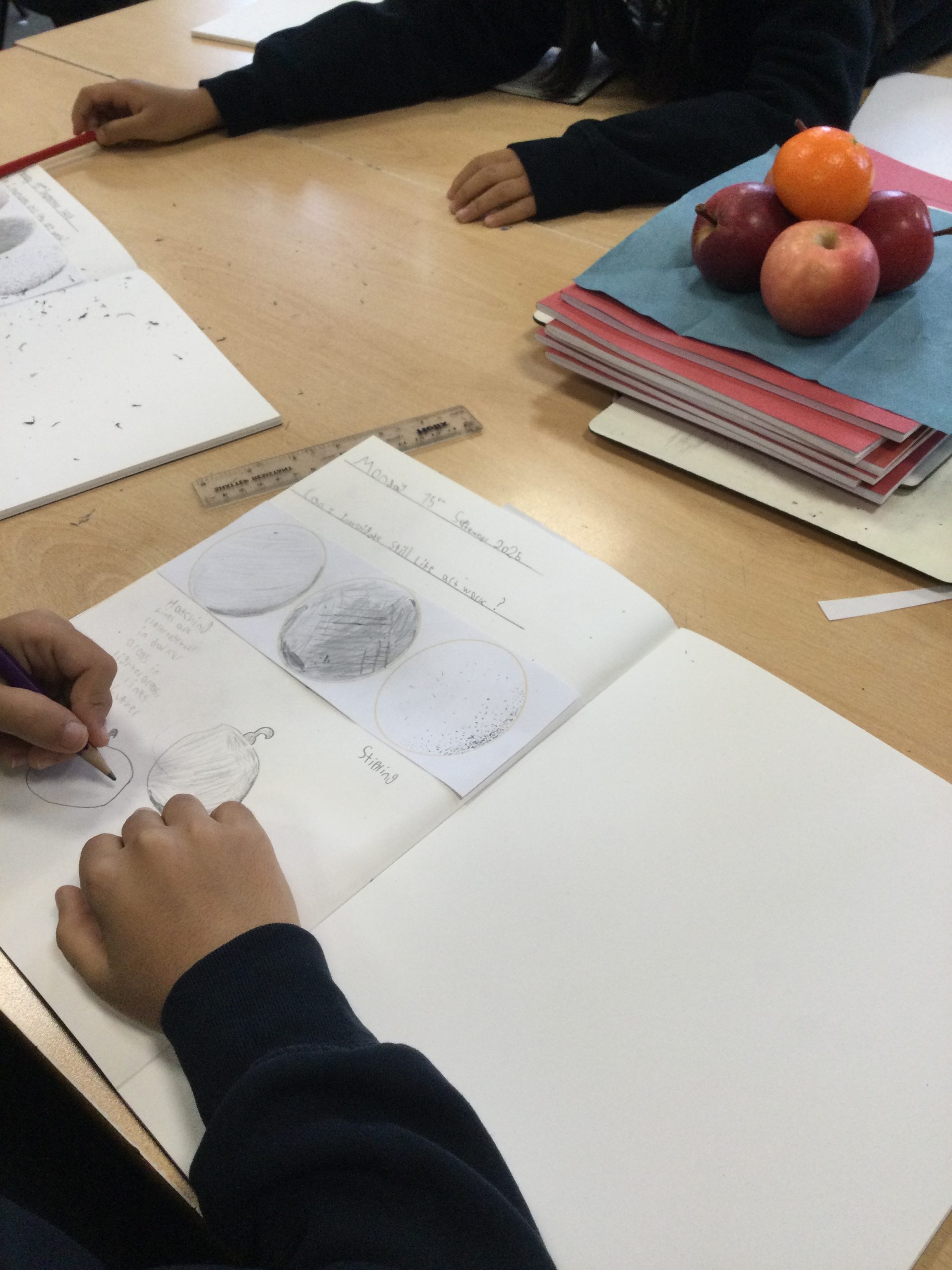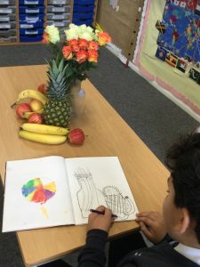 In art, year 4 have been practicing their sketching skills in our ‘still life’ topic. We practiced hatching, crosshatching and stippling. The children really enjoyed using the sketching pencils. We then put these skills into action by sketching the fruit in front of us.
