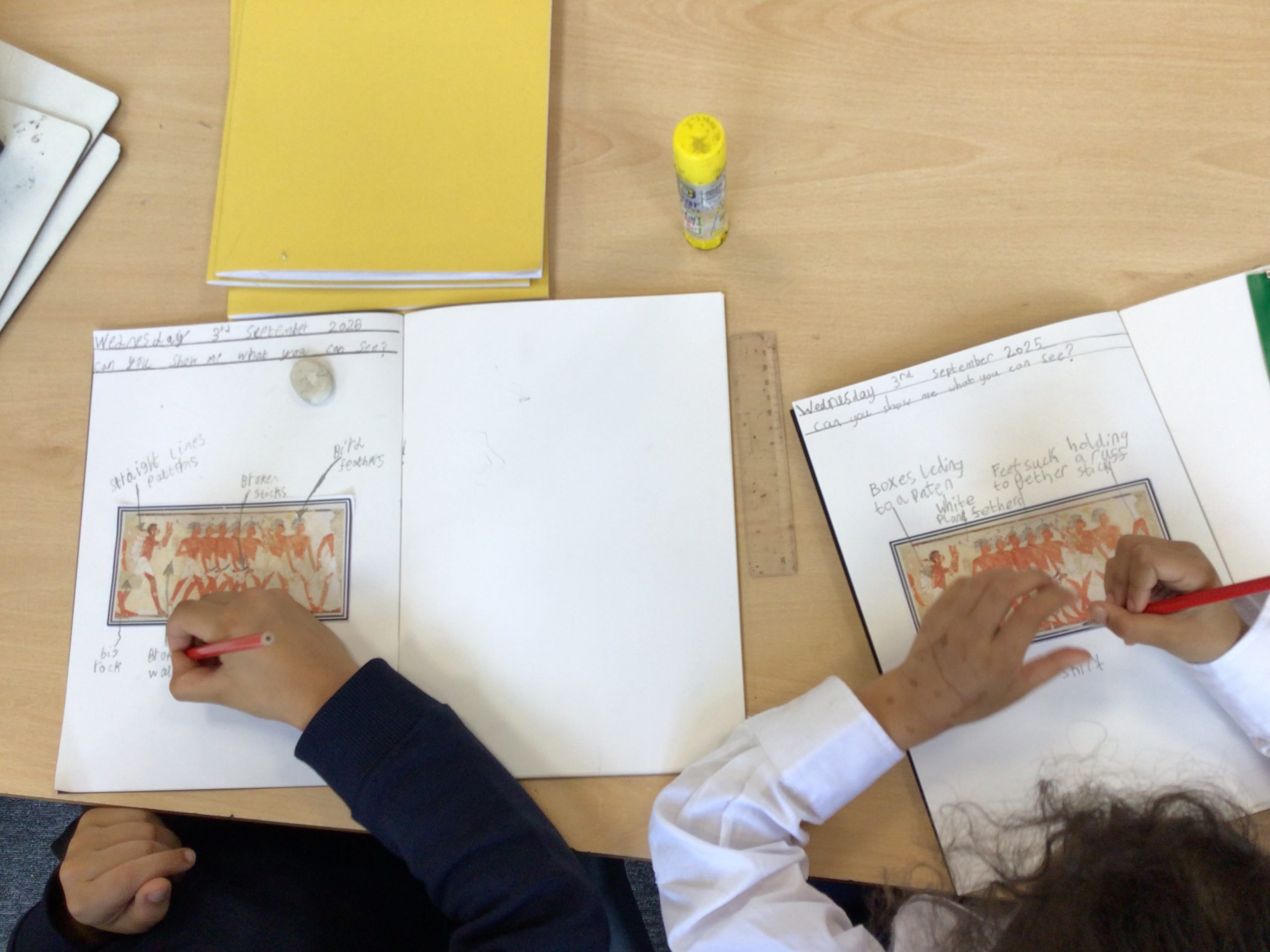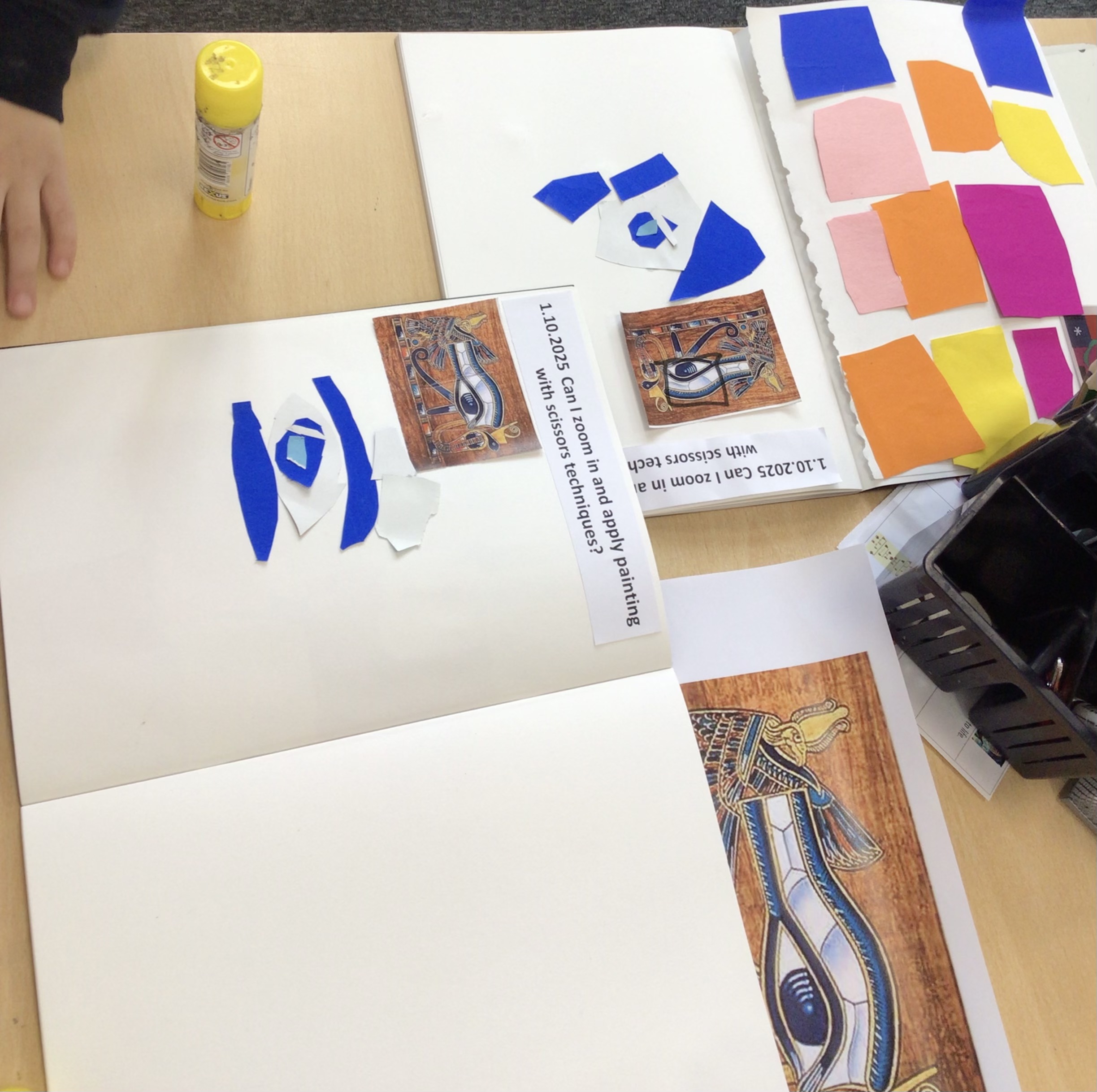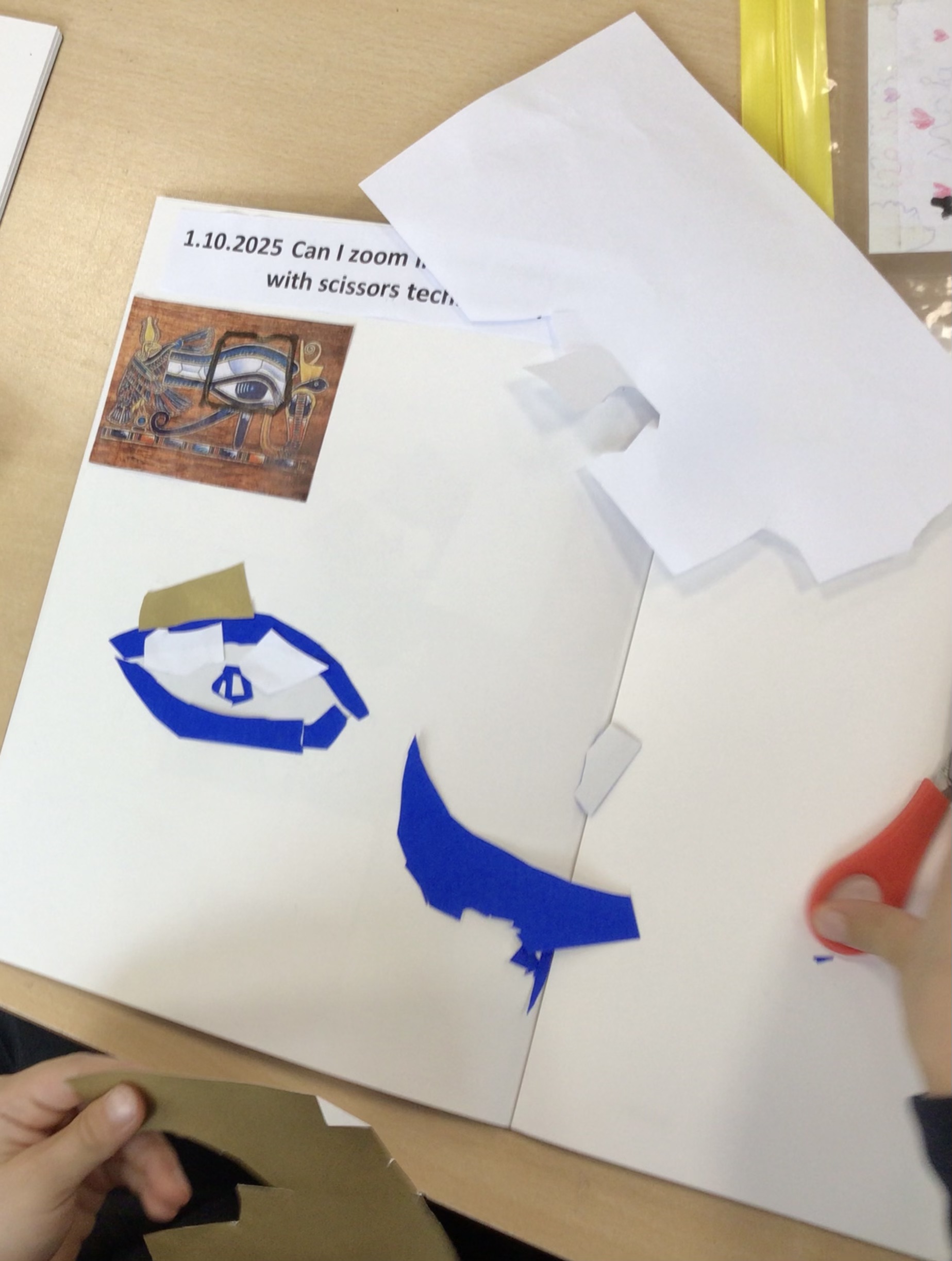 Year 3 had a great afternoon applying their painting with scissors skills to some Ancient Egyptian paintings. We discussed the pictures and what we could see, using our art vocabulary. We then had the challenge of focusing on a small part of these images and then had to recreate this.