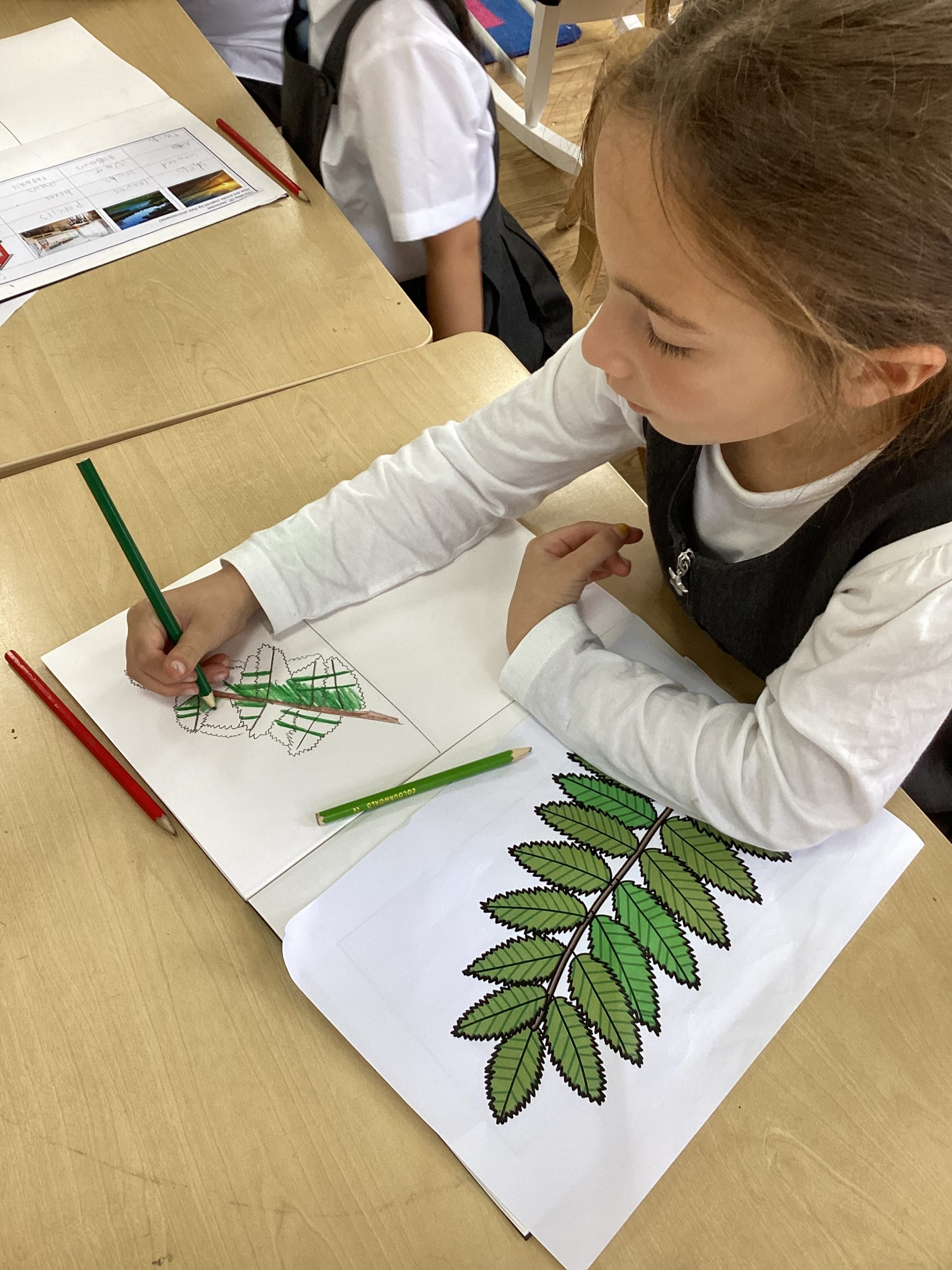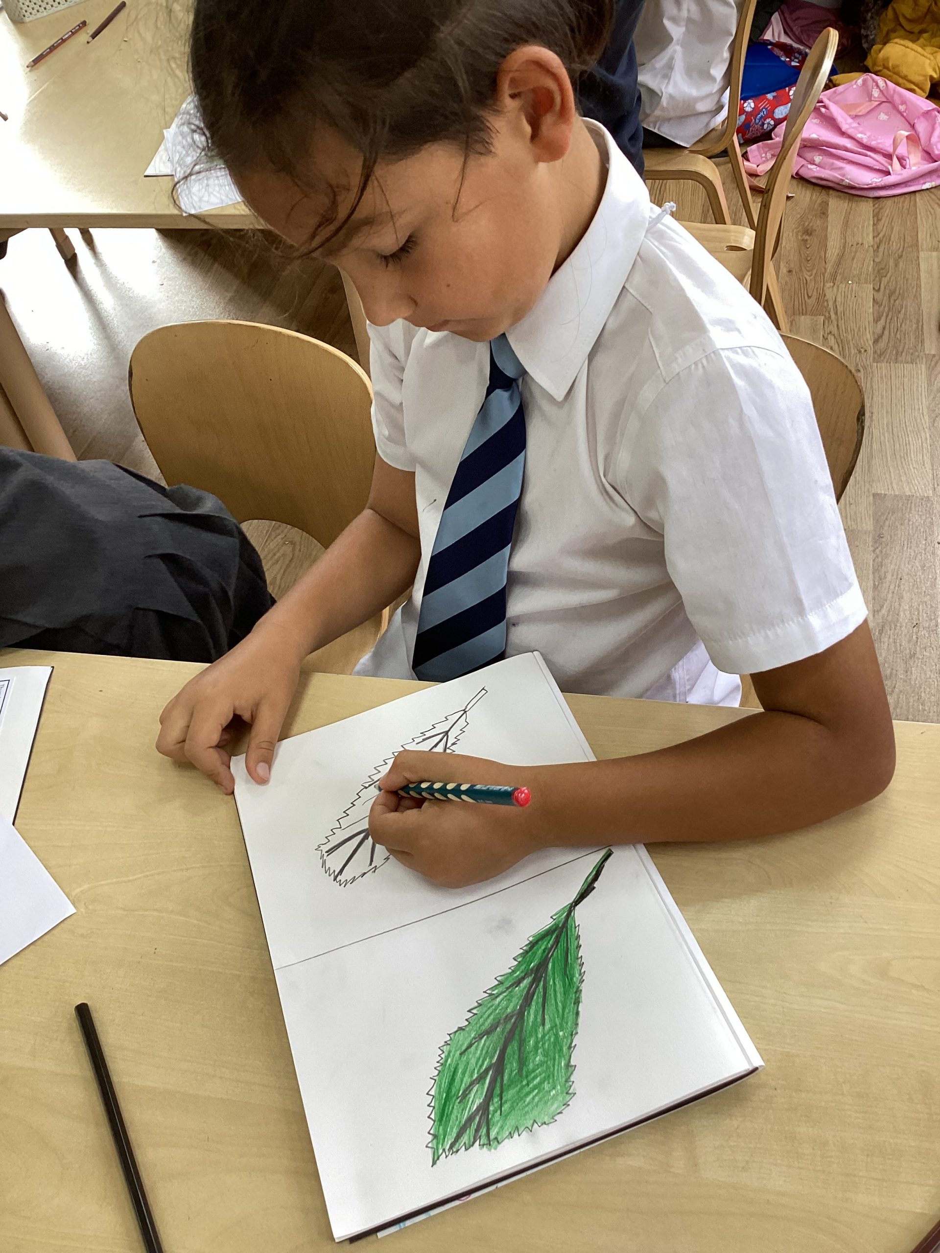 Today we completed four drawings of our leaf. We used colour, sketching and continuous lines. We even did one with our eyes closed! We have some amazing artists in Year 2.