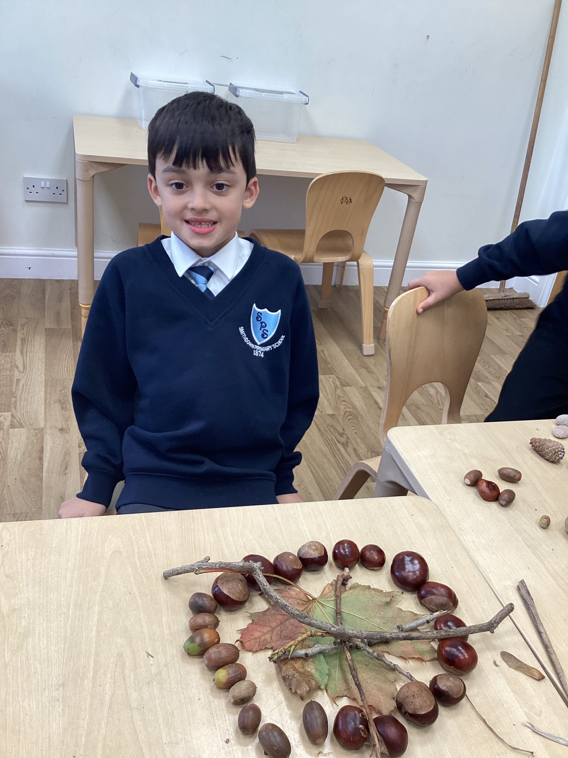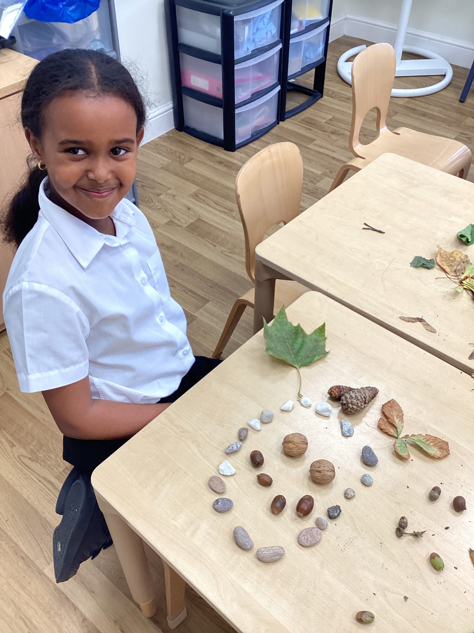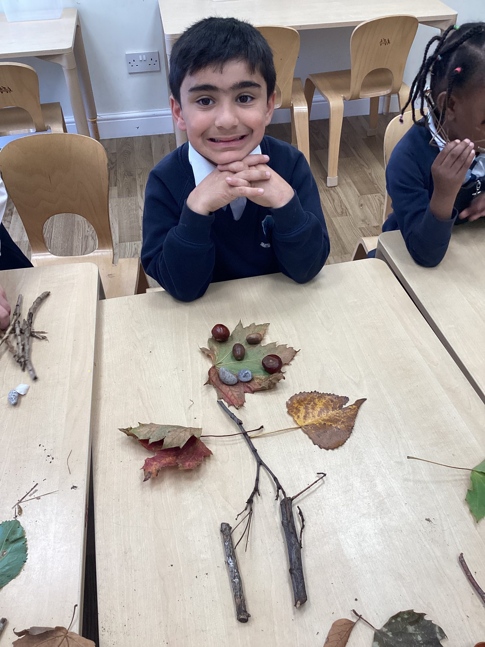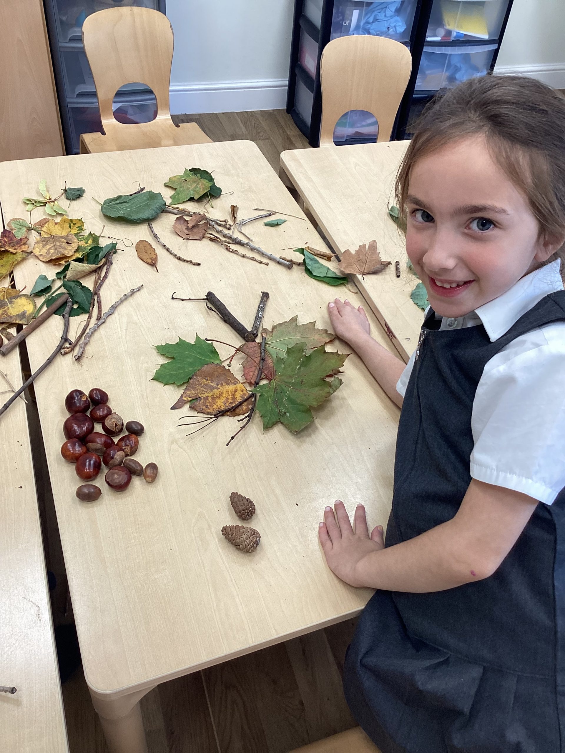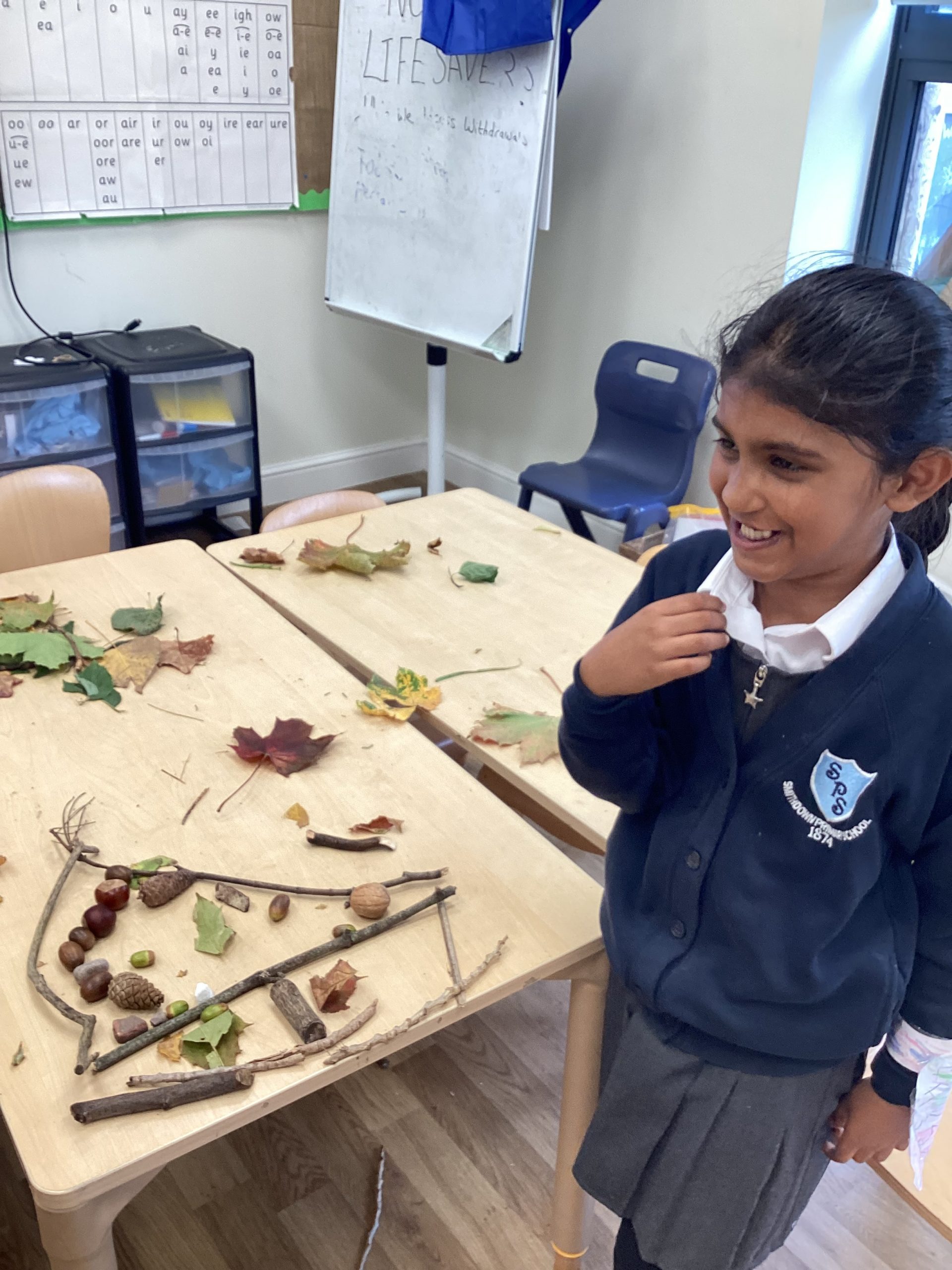 Year 2 have made their own pictures out of natural materials that we have collected.