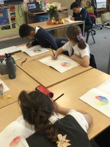 We had so much fun painting our colour wheels and understanding how different colours are made. We discussed primary and secondary colours.