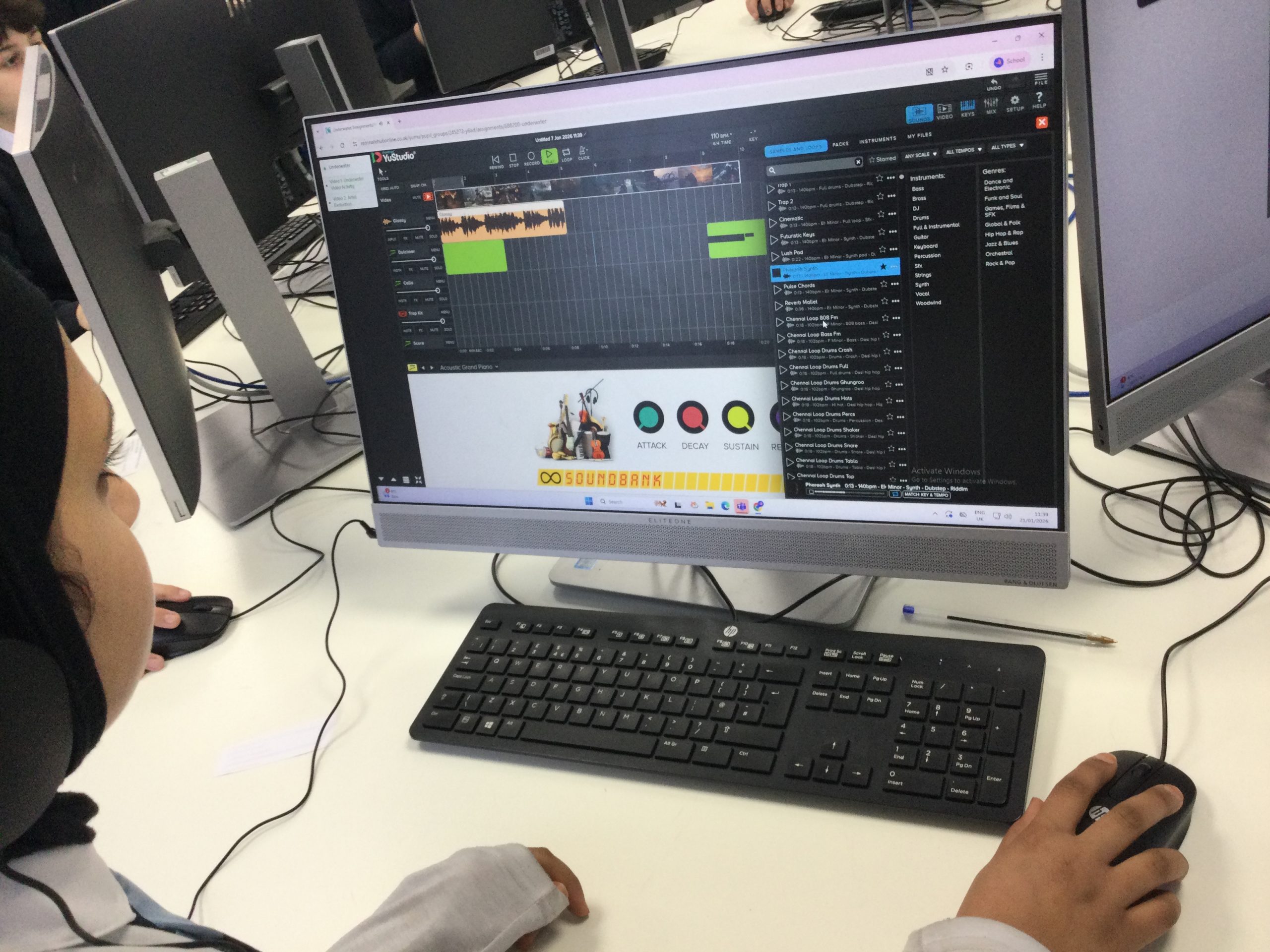 We are learning how to use a software programme to compose music to suit a film soundtrack / scene.