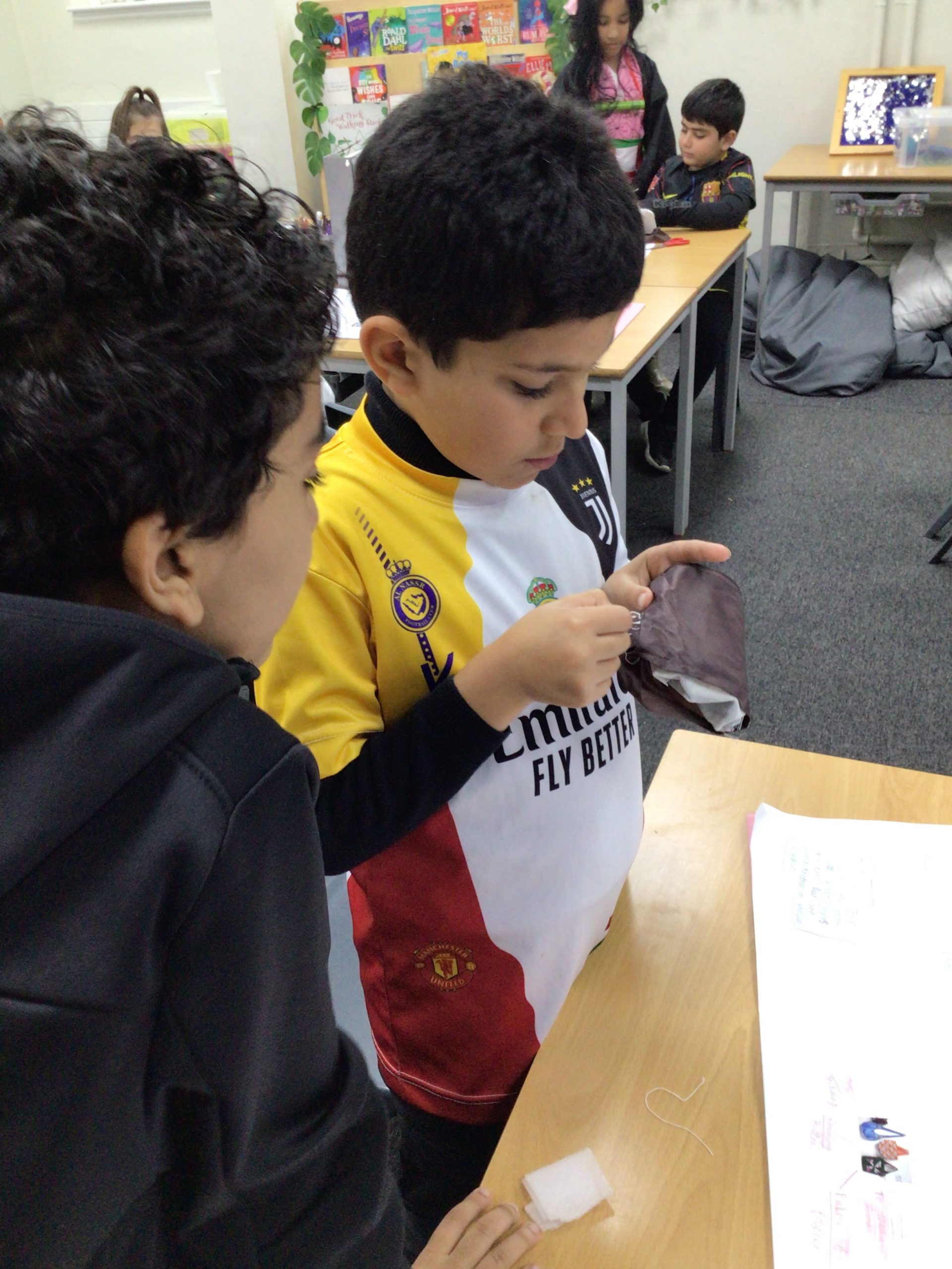 We are having our first try at sewing using different stitches today. This is in preparation for designing and sewing our own bags.