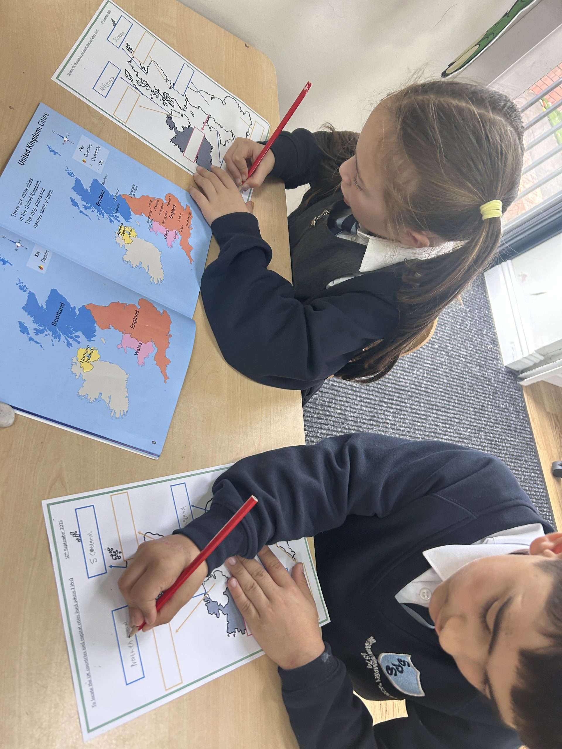 In Geography this afternoon we used an atlas to help us name the countries of the UK and the capital cities. We worked so well with a partner #smithdowngeog