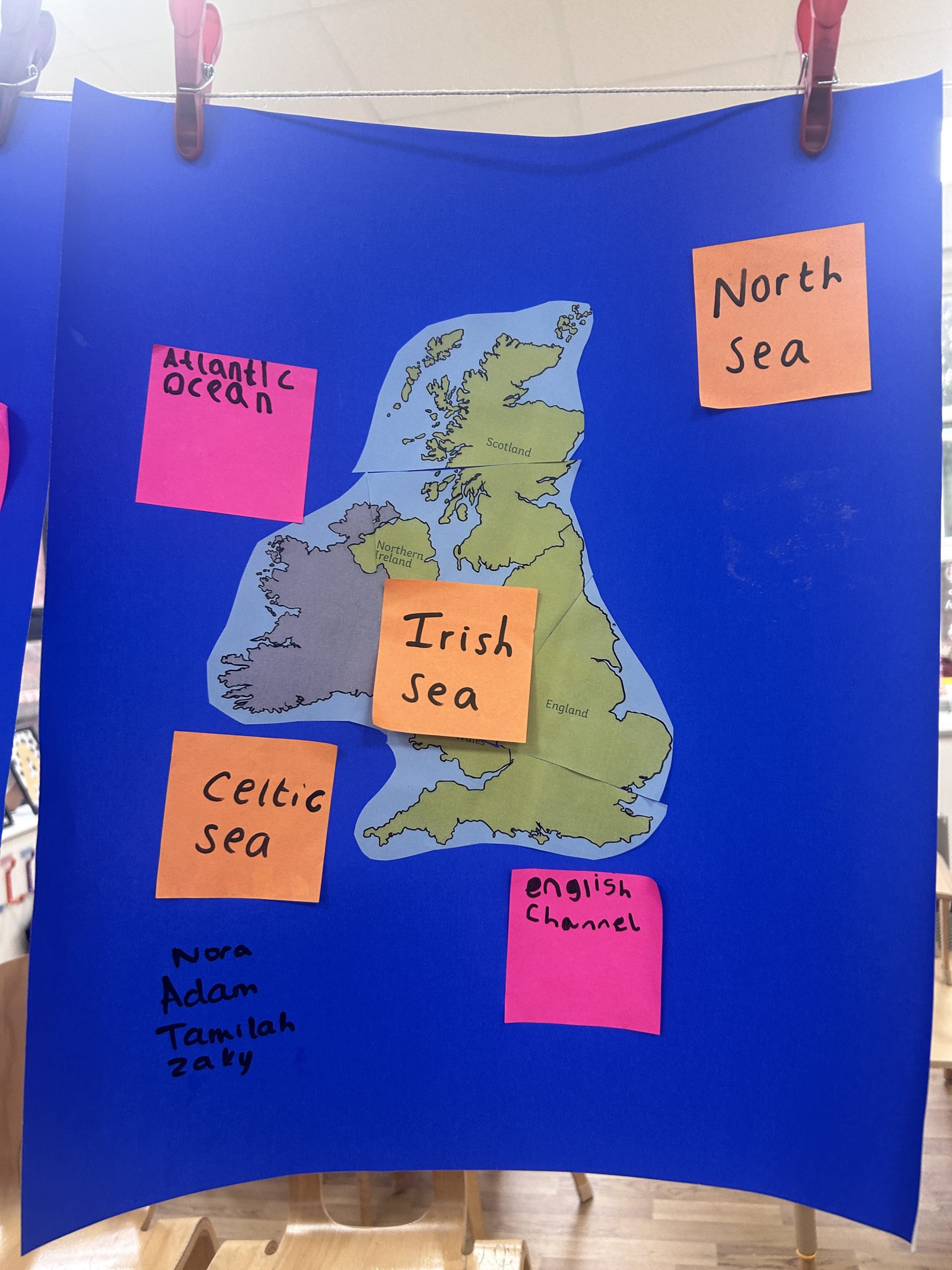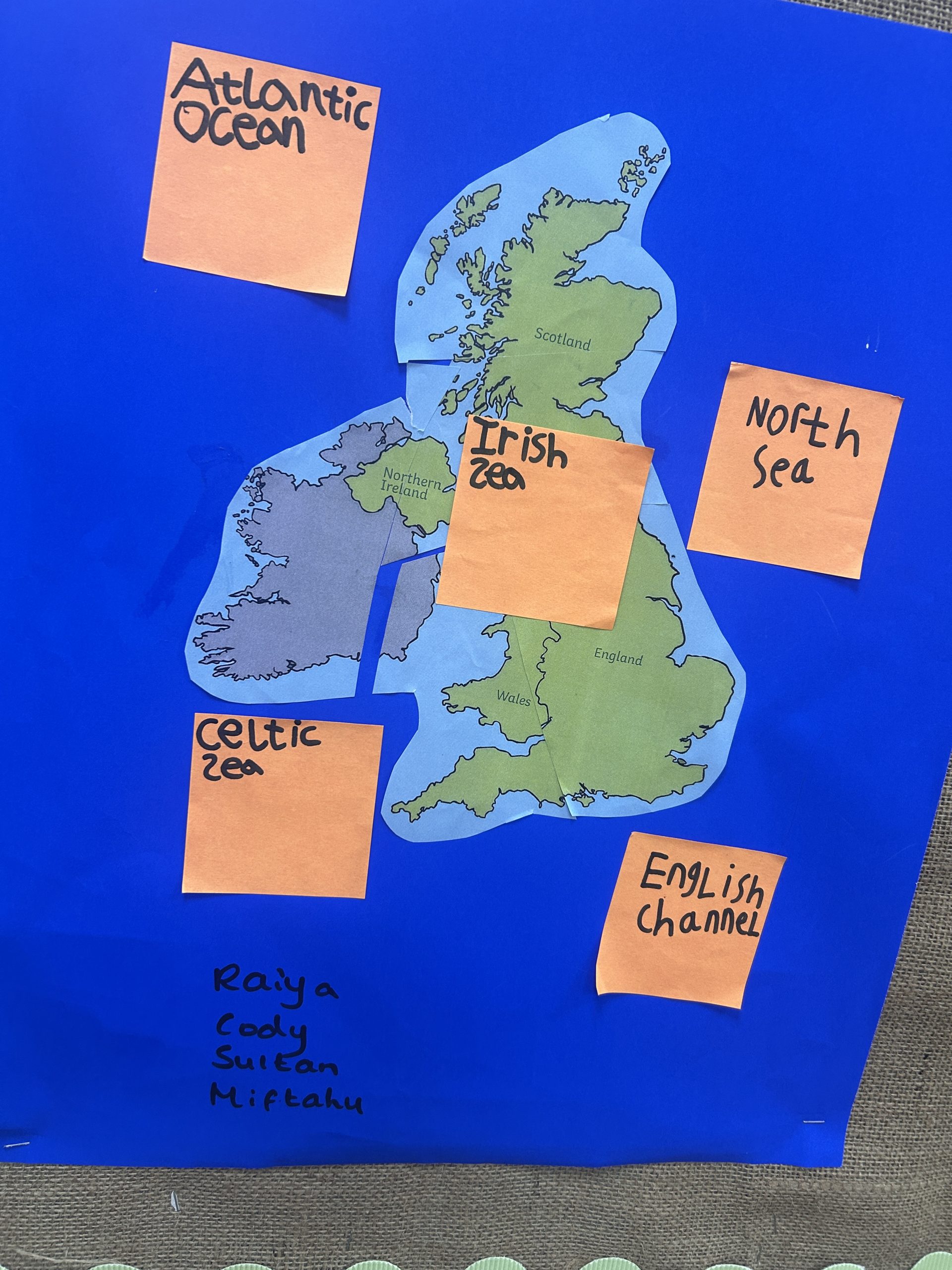 Today we had lots of fun locating the countries and capital cities of the UK. We then worked in teams to create our own maps labelling the surrounding waters.