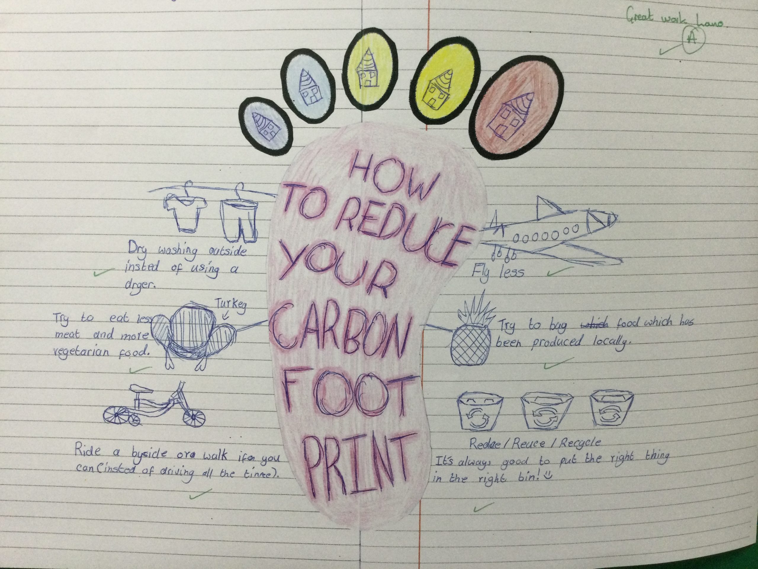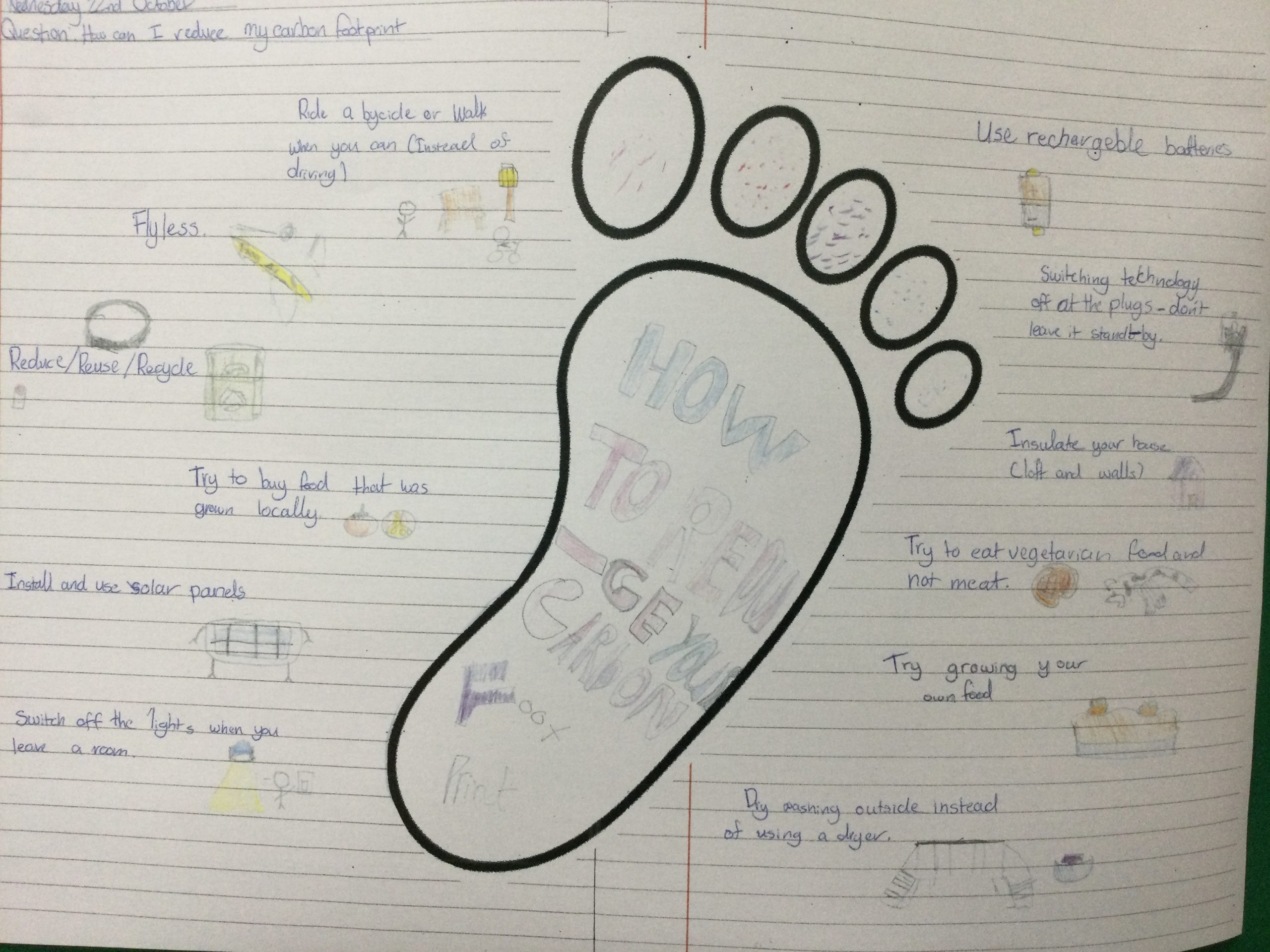 We have been finding out about ways in which everyone can reduce their carbon footprint by sometimes, small simple actions which can help our planet.