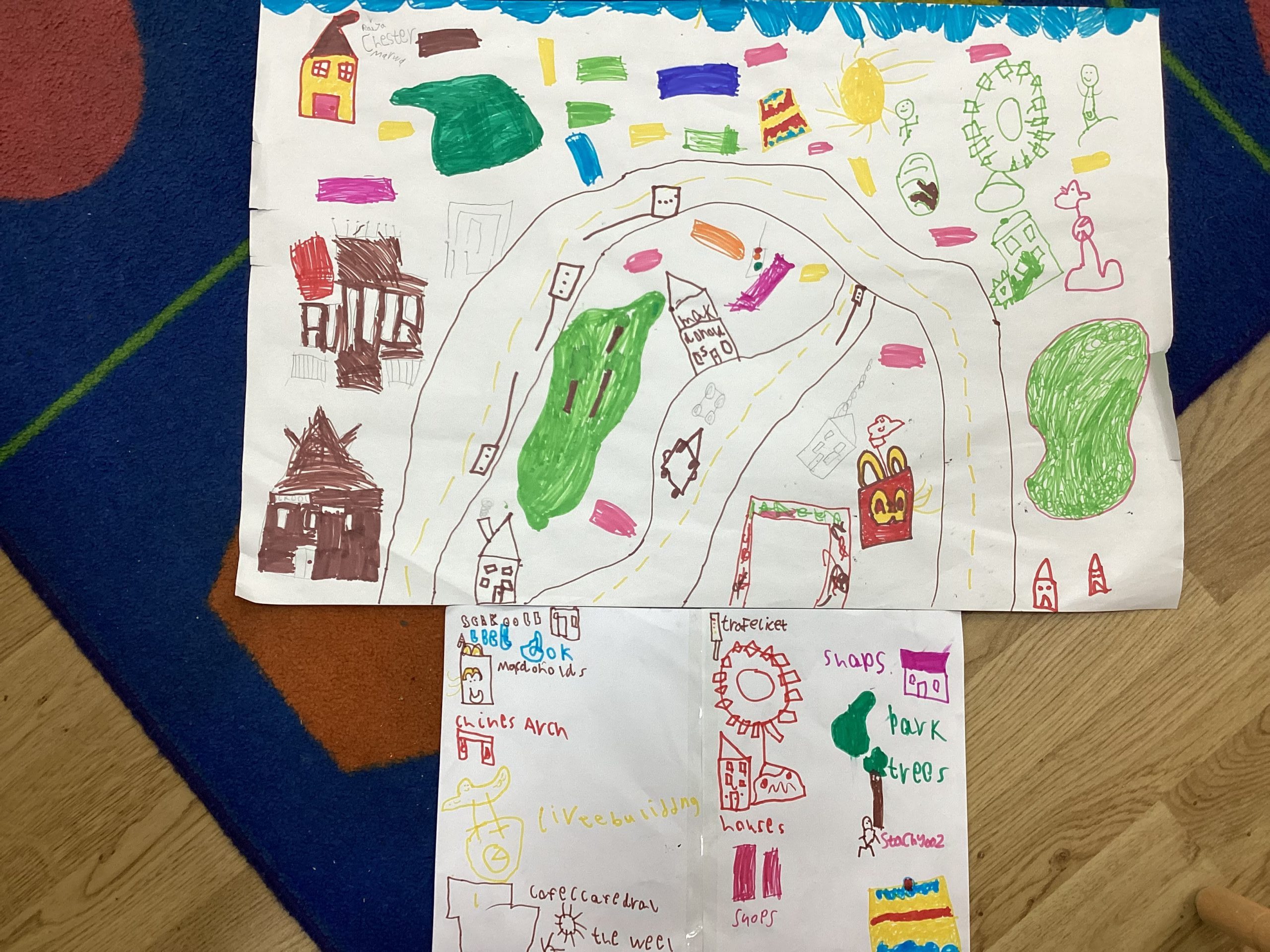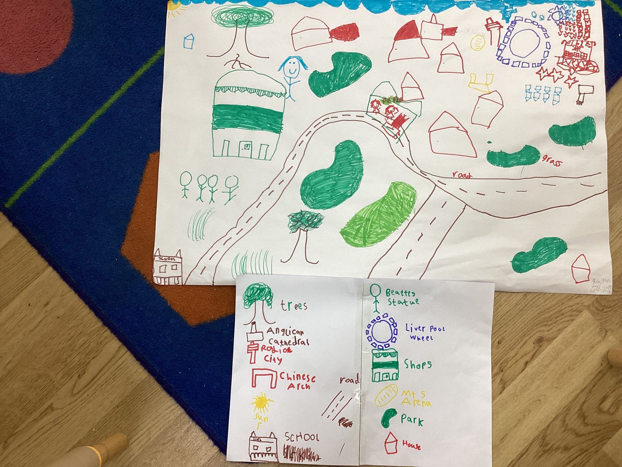 We made our own messy maps of our tour bus route. We even made our own key to help you to read our maps. Two little superstars went off and made their own maps too.