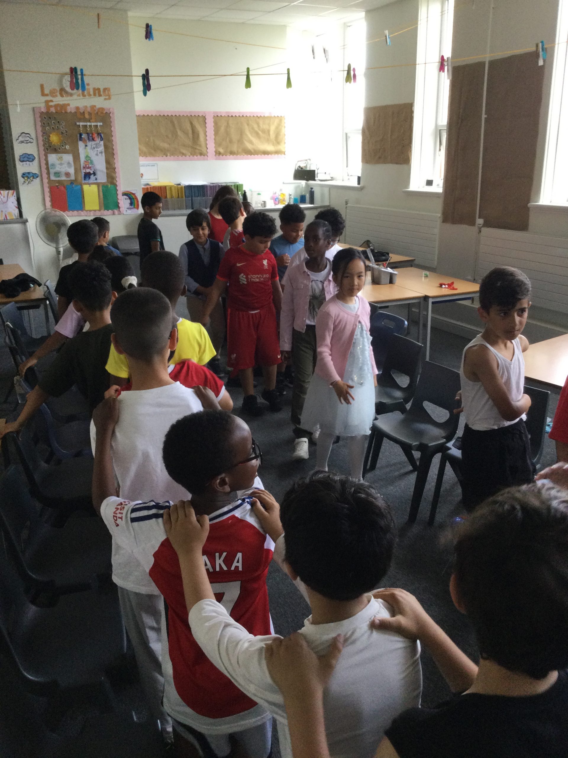 We had AS Creative deliver a super session to link with our 150 years celebrations. Year 3 we’re looking at events through our school’s life, so in our session we focused on WWII. We did freeze frames to represent evacuation, rationing and the blitz. It was a great way to think about the children who would have experienced this event in our school in 1939-1945.