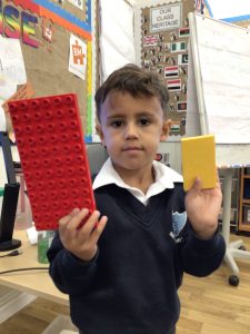 Today we built towers using different cubes and compared them using the ‘greater than’ ‘less than’ and ‘equal to’ symbols.