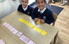 In maths this week we are learning about how some numbers can be made up of two equal parts. We are looking at arrangements of numbers to spot and make equal and unequal parts.