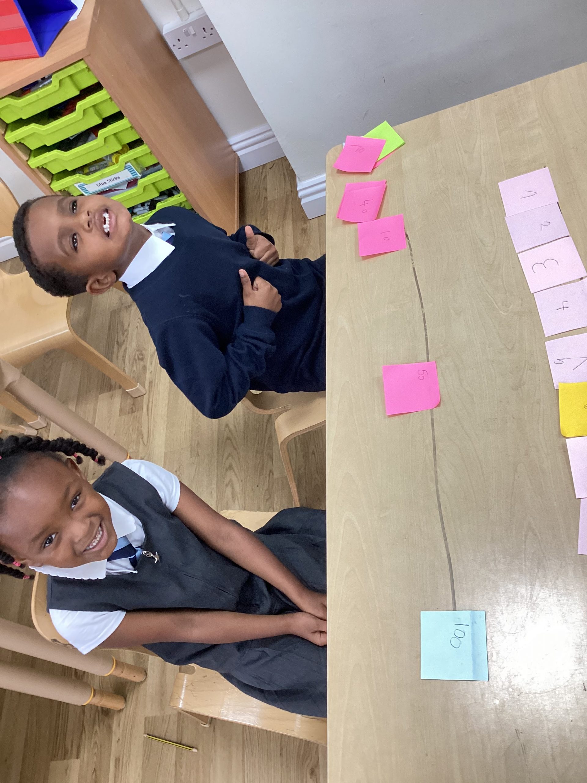 We started to learn about a number line on Friday. We used our knowledge of 0-10 to help us to place multiples of 10 on an empty number line.