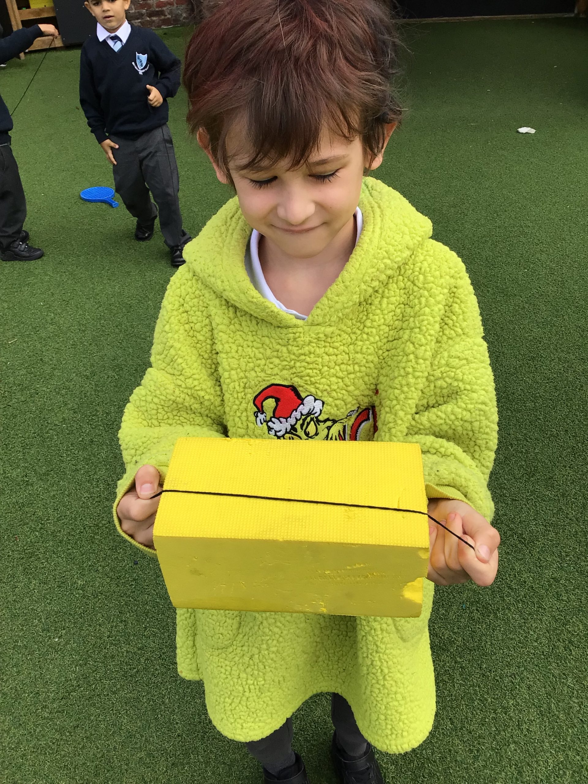 Y1 have been exploring the school to find objects longer or shorter than a piece of string.