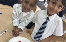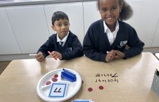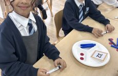 We have been busy learning about Diwali the festival of light. We have moulded dough into Diya lamps. Made marks to create Rangoli patterns and wrote our names in our cards we have decorated.