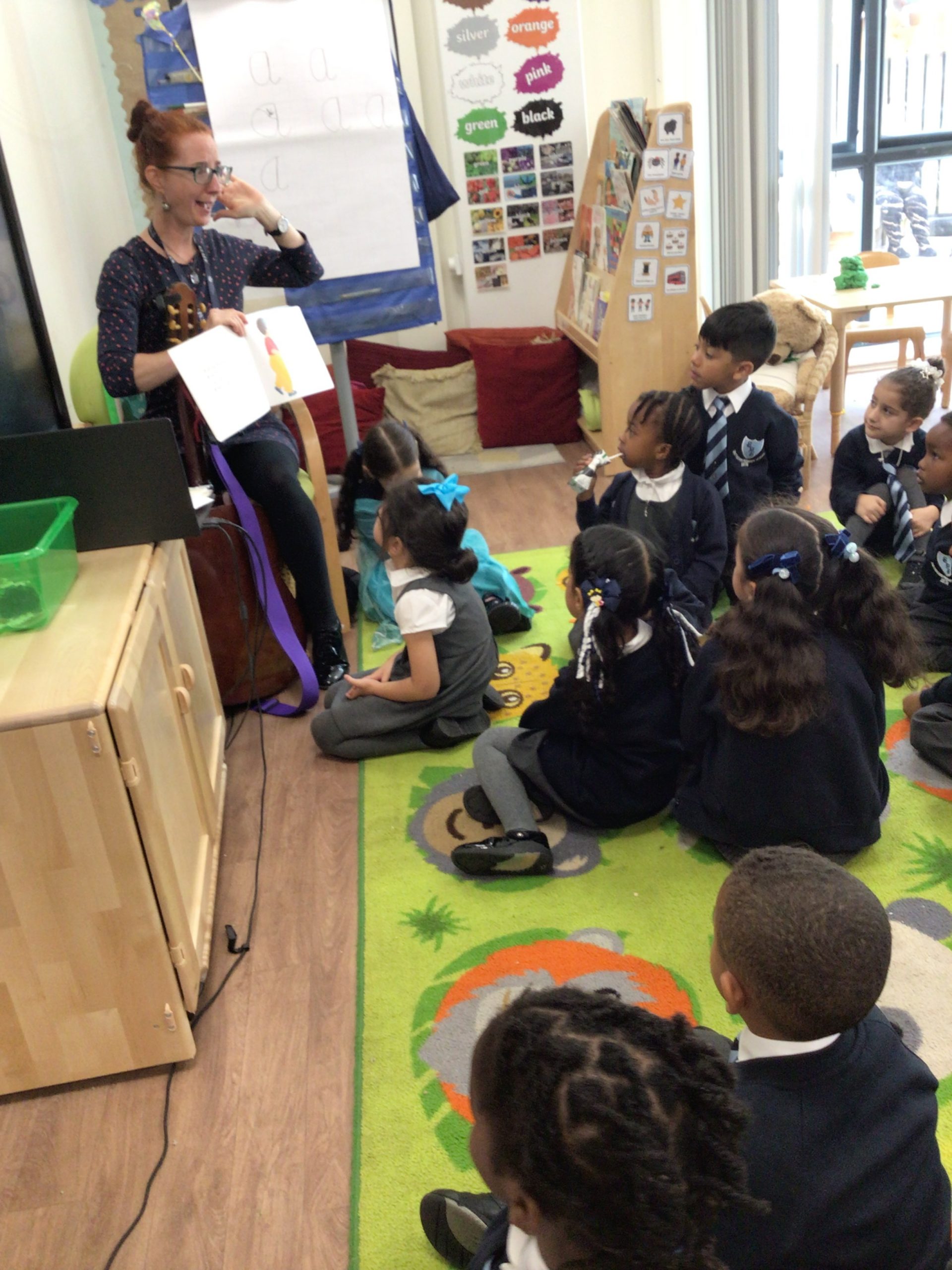 We really enjoyed singing songs and listening to the sounds of the ukulele in music today.