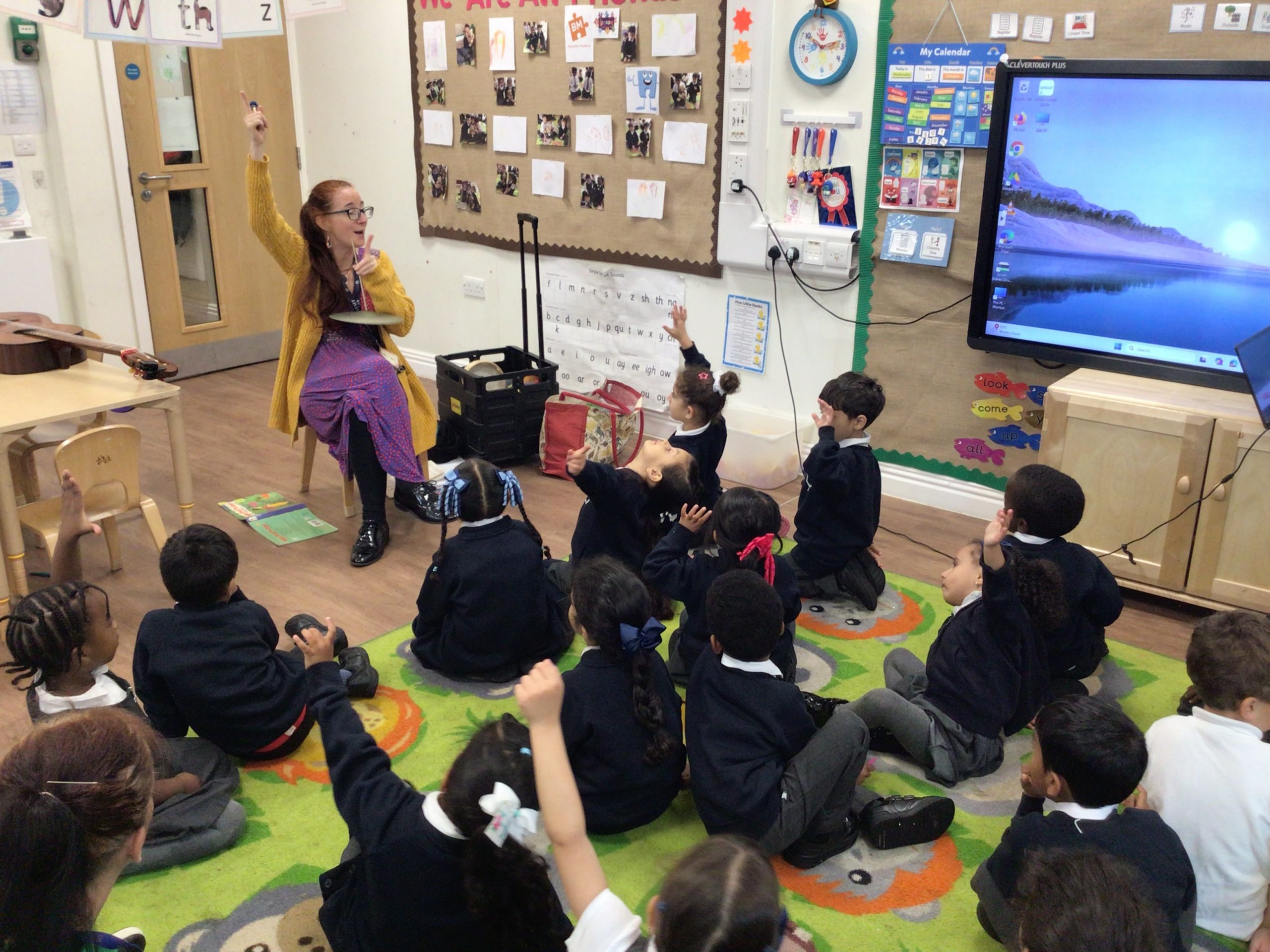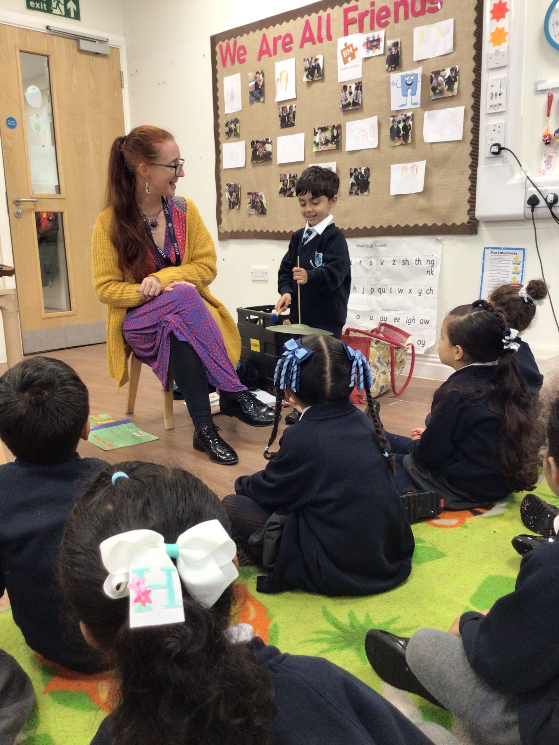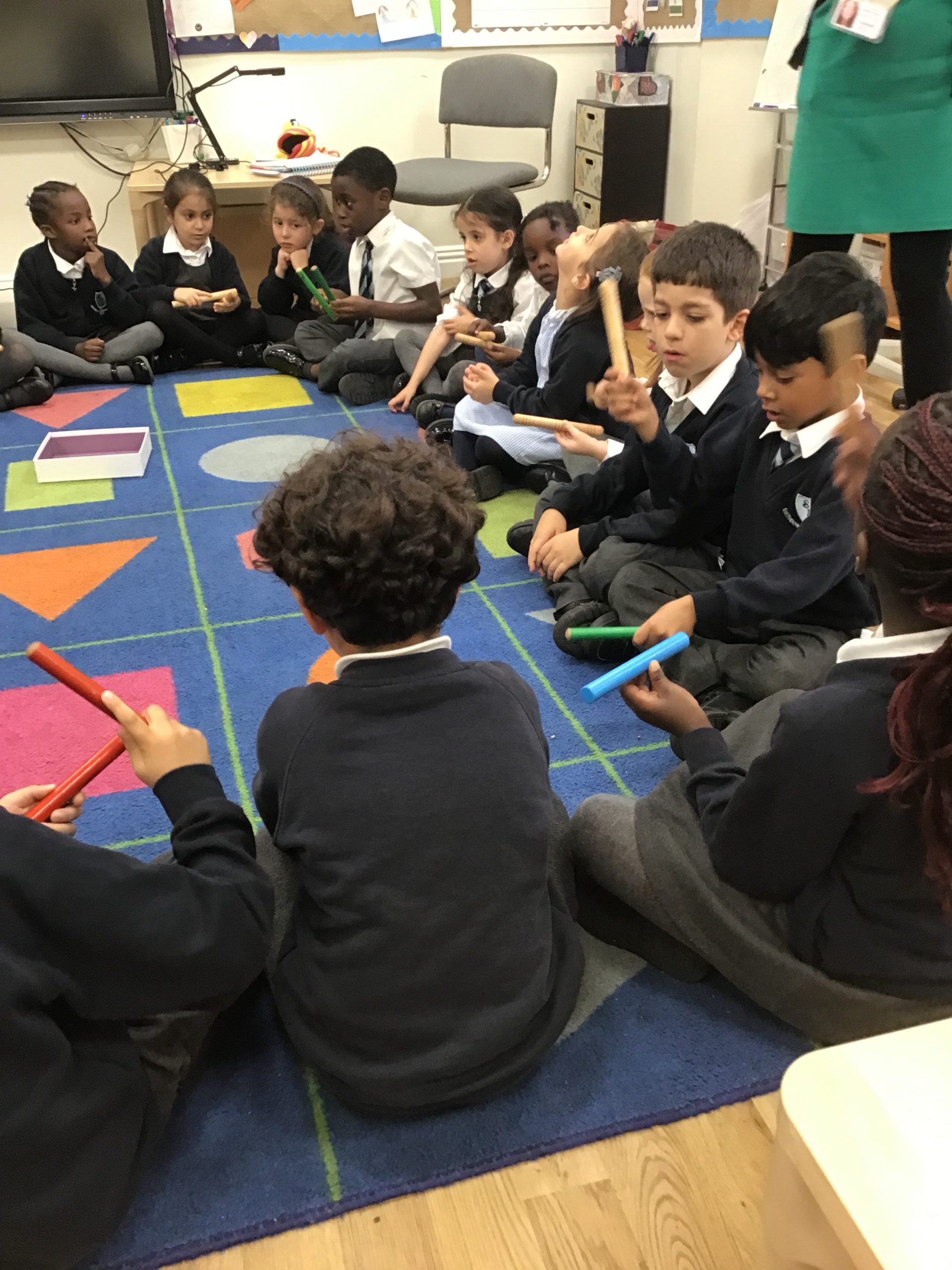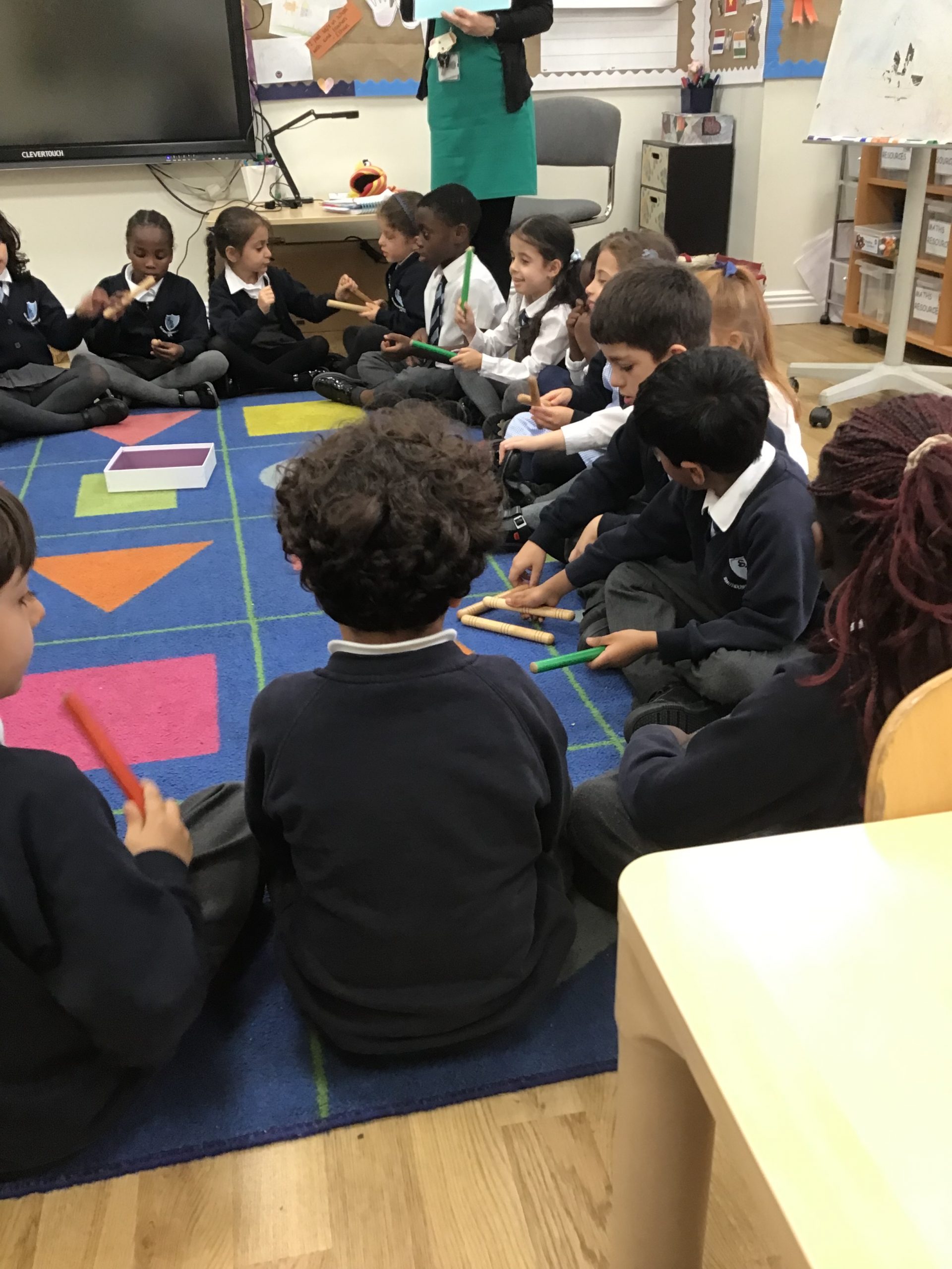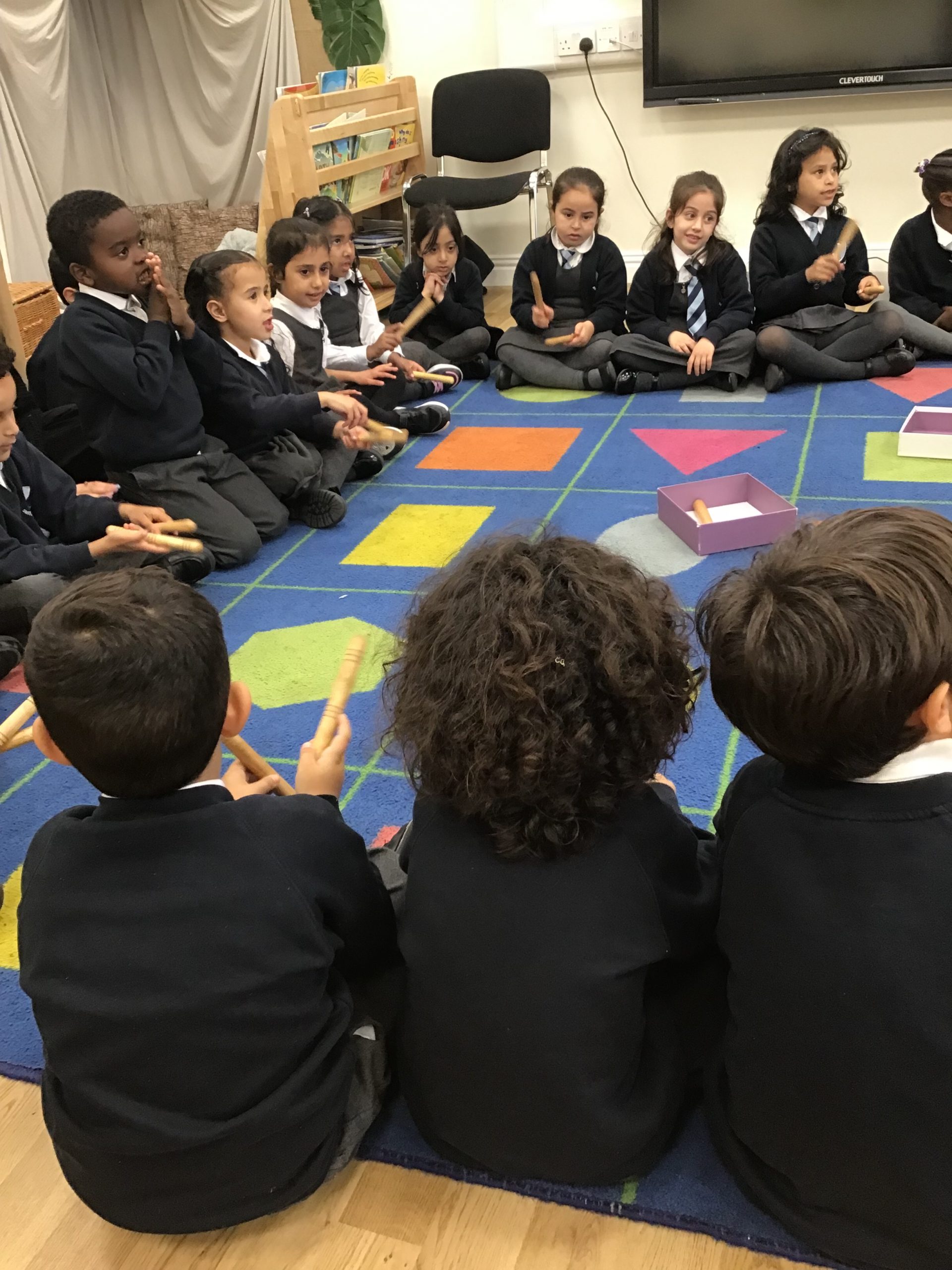 • In the Early Years Foundation Stage, children explore sound, rhythm, and movement through songs, body percussion and untuned instruments. These experiences lay the foundation for listening, coordination, and early musicianship.