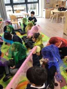 This week we have learnt two new songs, I’m a little tea pot and tiny Tim. We have had fun exploring with the soap and water. We have also been making cups of tea using the tea bags.