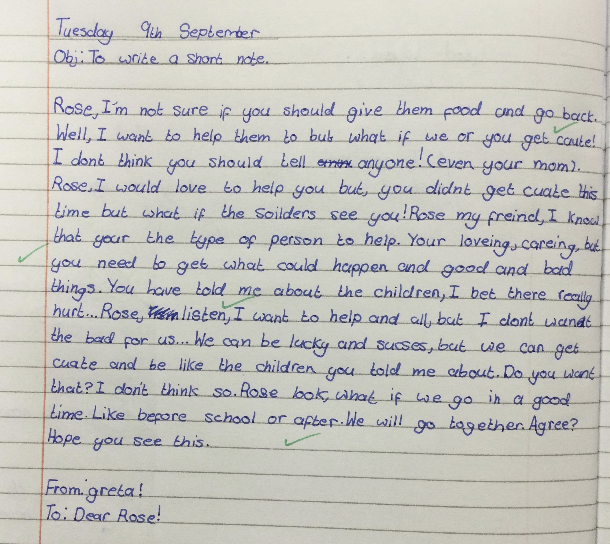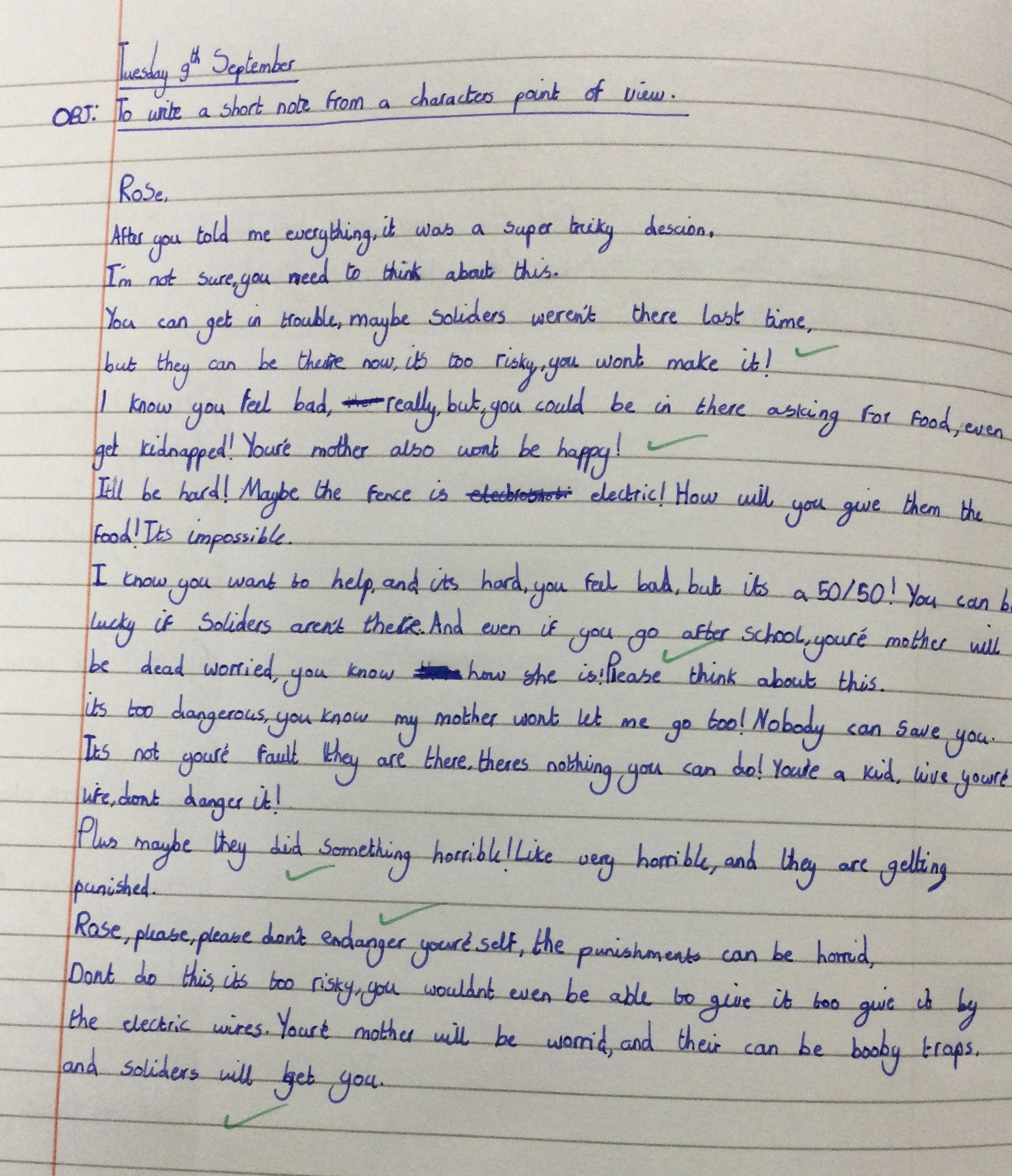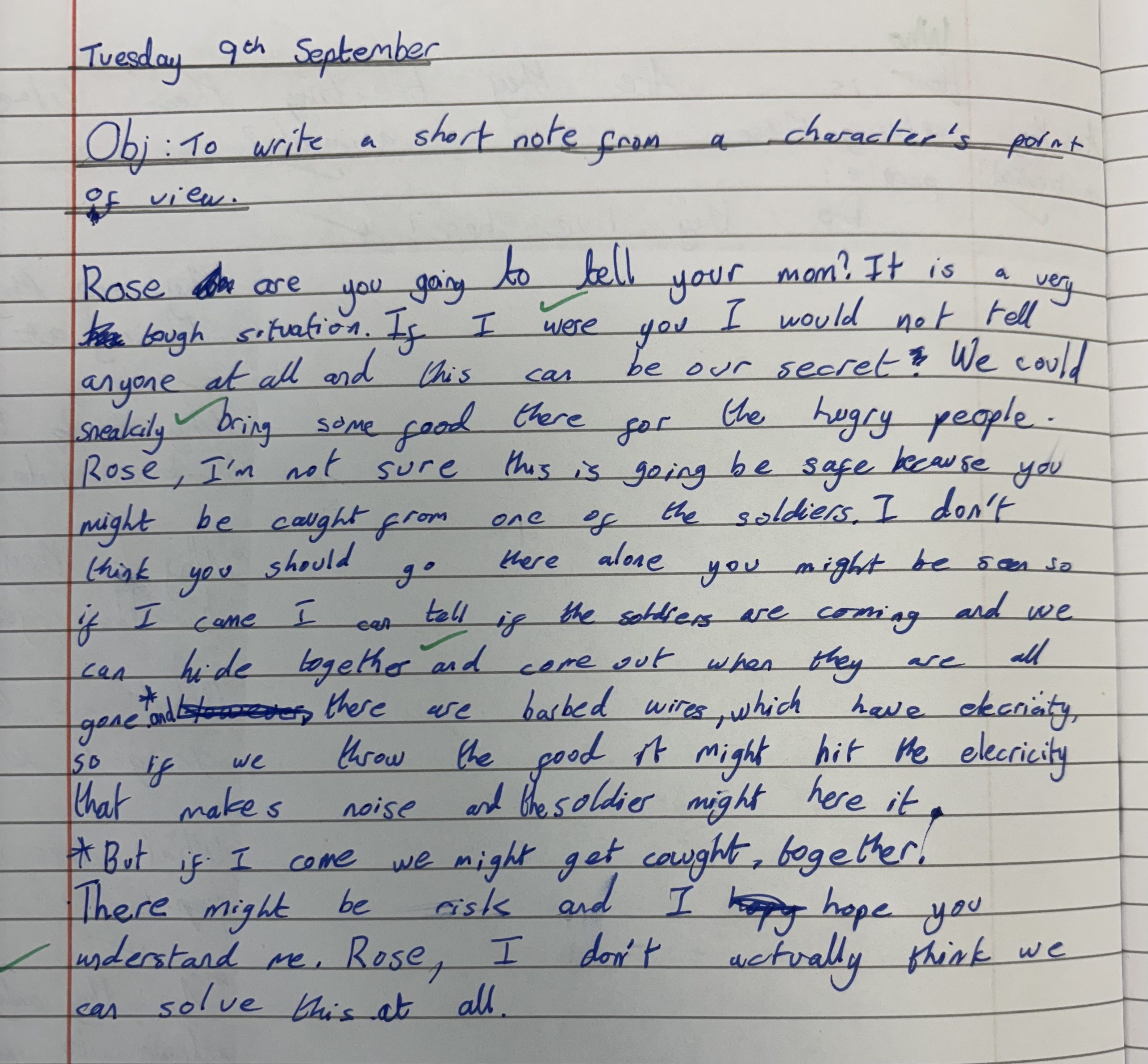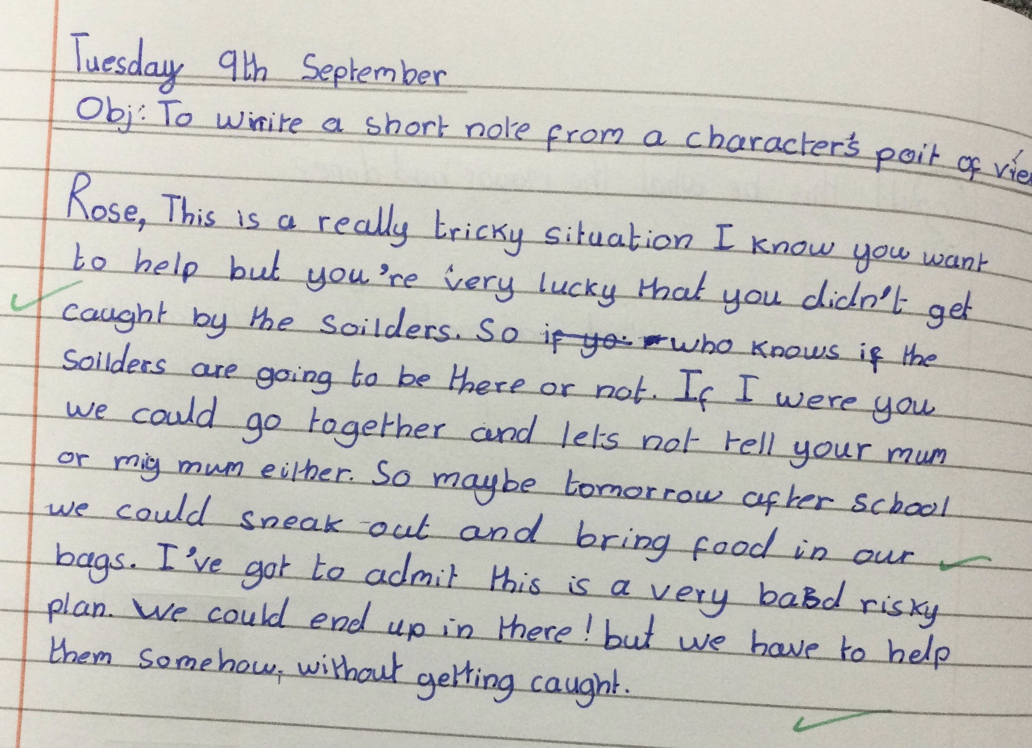 We really enjoyed writing these dual narratives in Year 6, we used two characters from the book we read together in lessons. We hope you enjoy reading them.