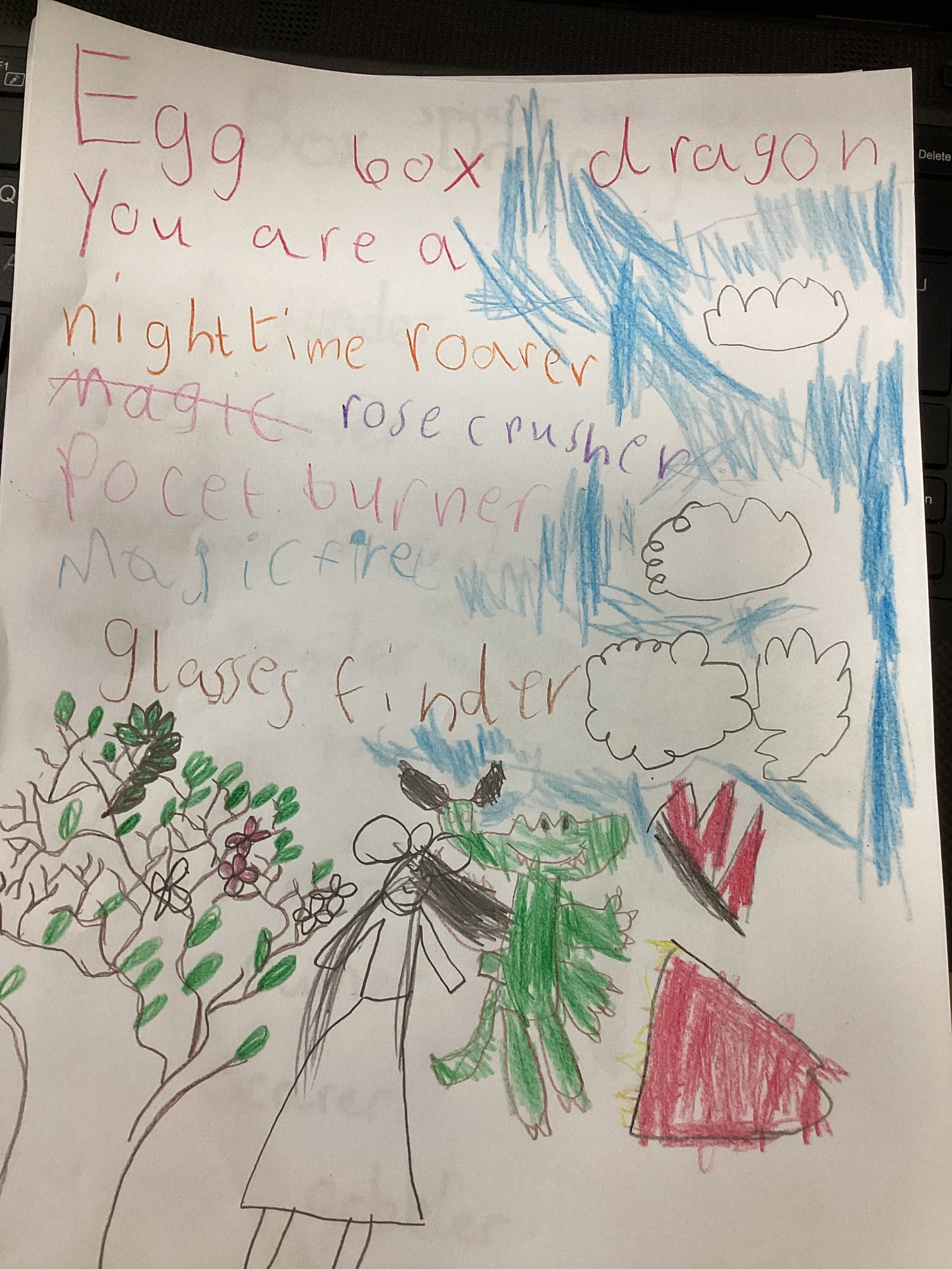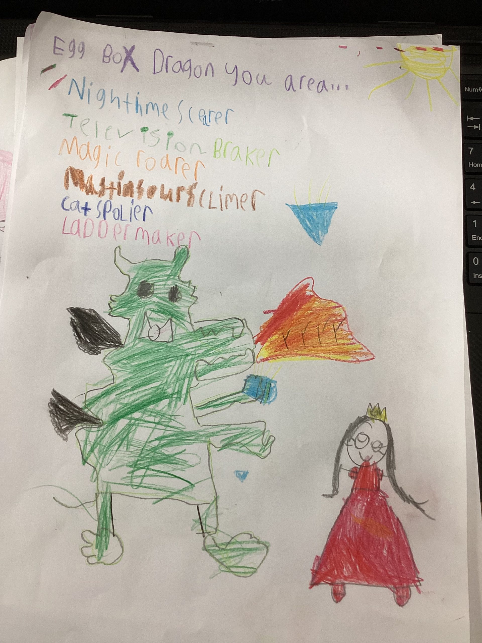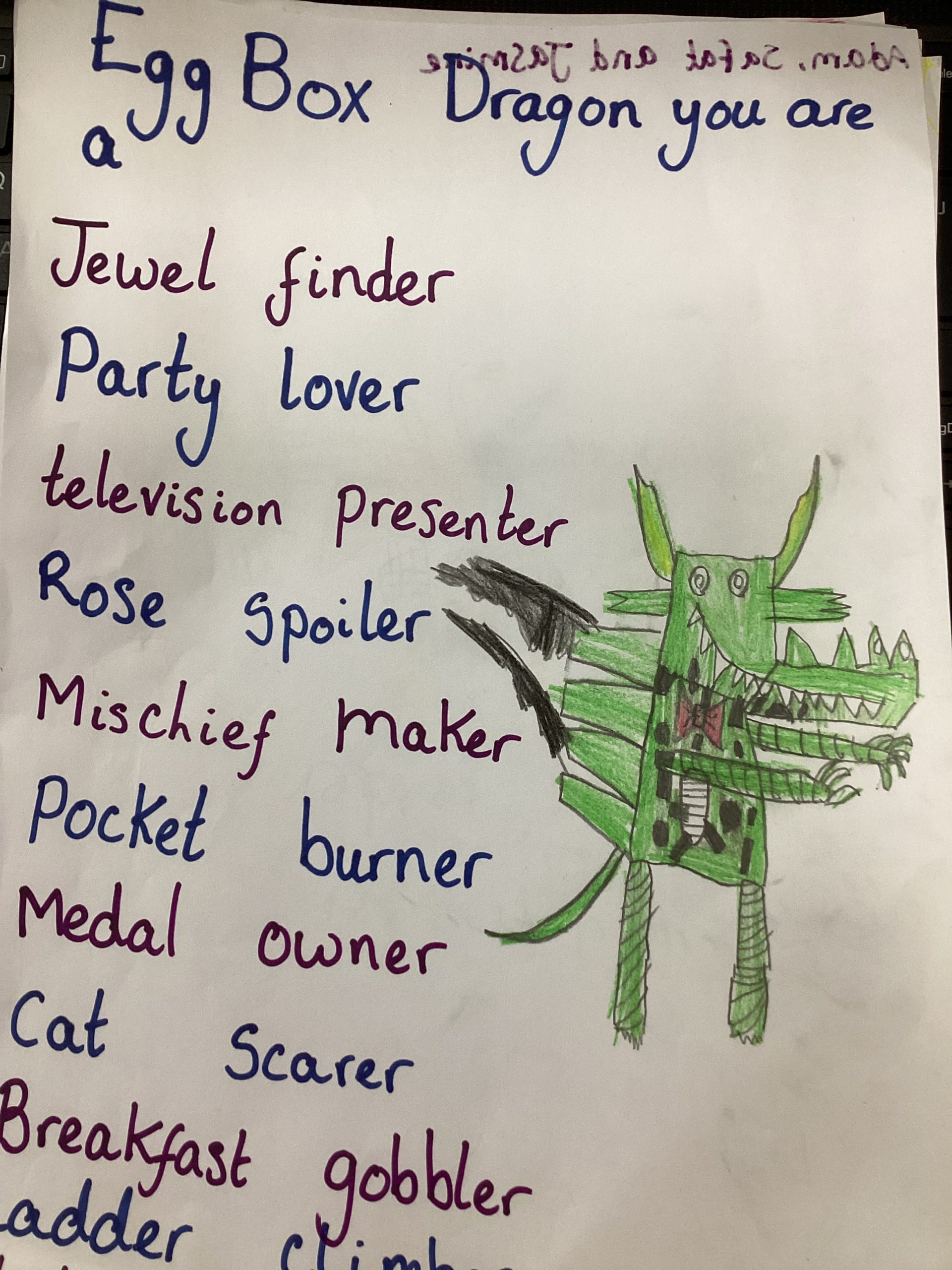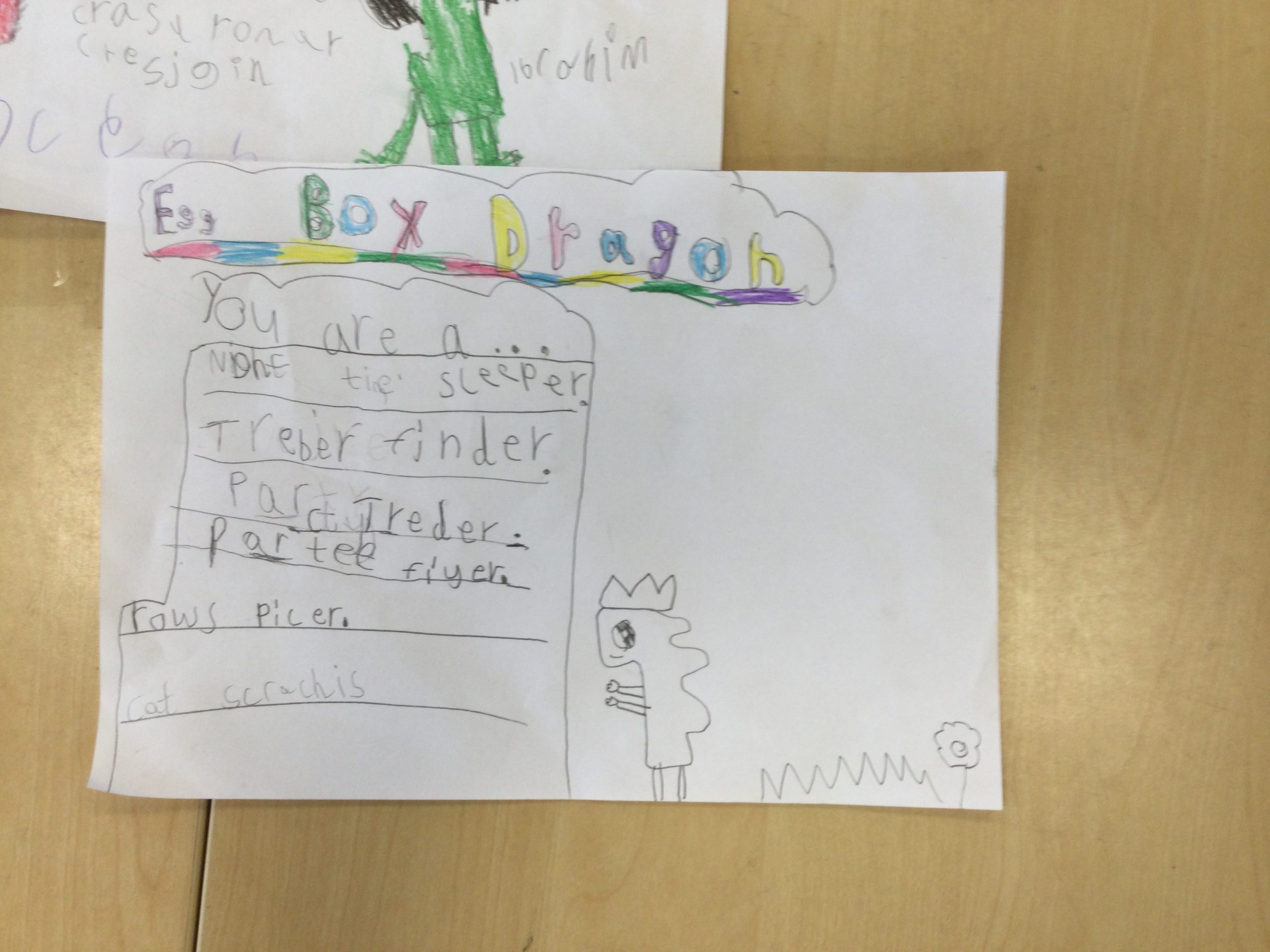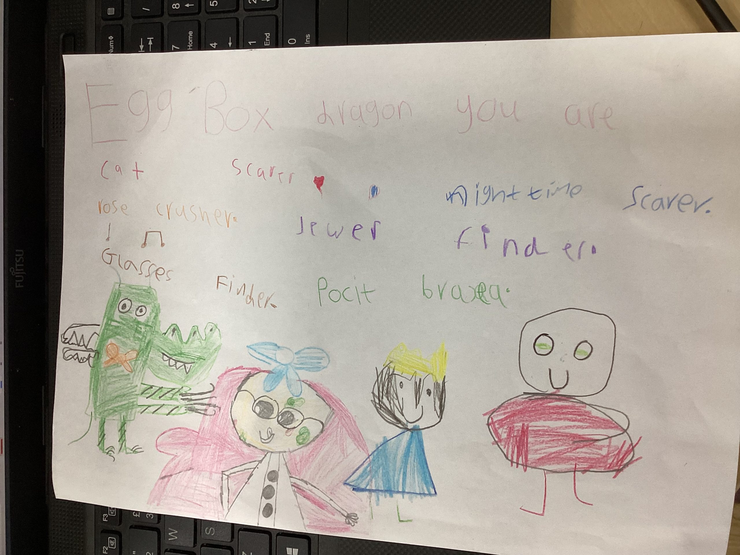 We worked so hard to create a kenning poem. We thought about what we know about Egg Box Dragon and used our knowledge of the suffix -er too. I am very proud of you all, good job!