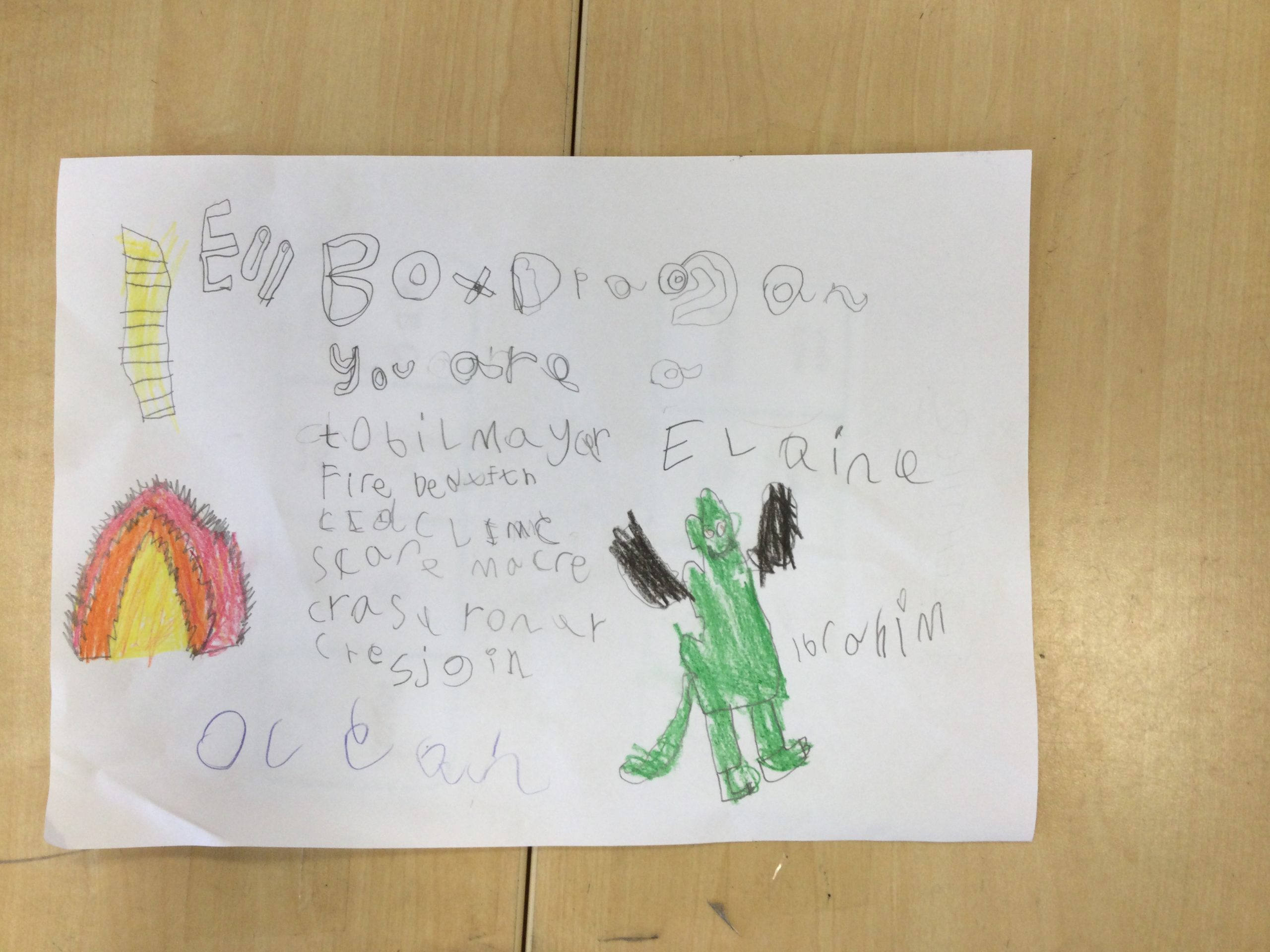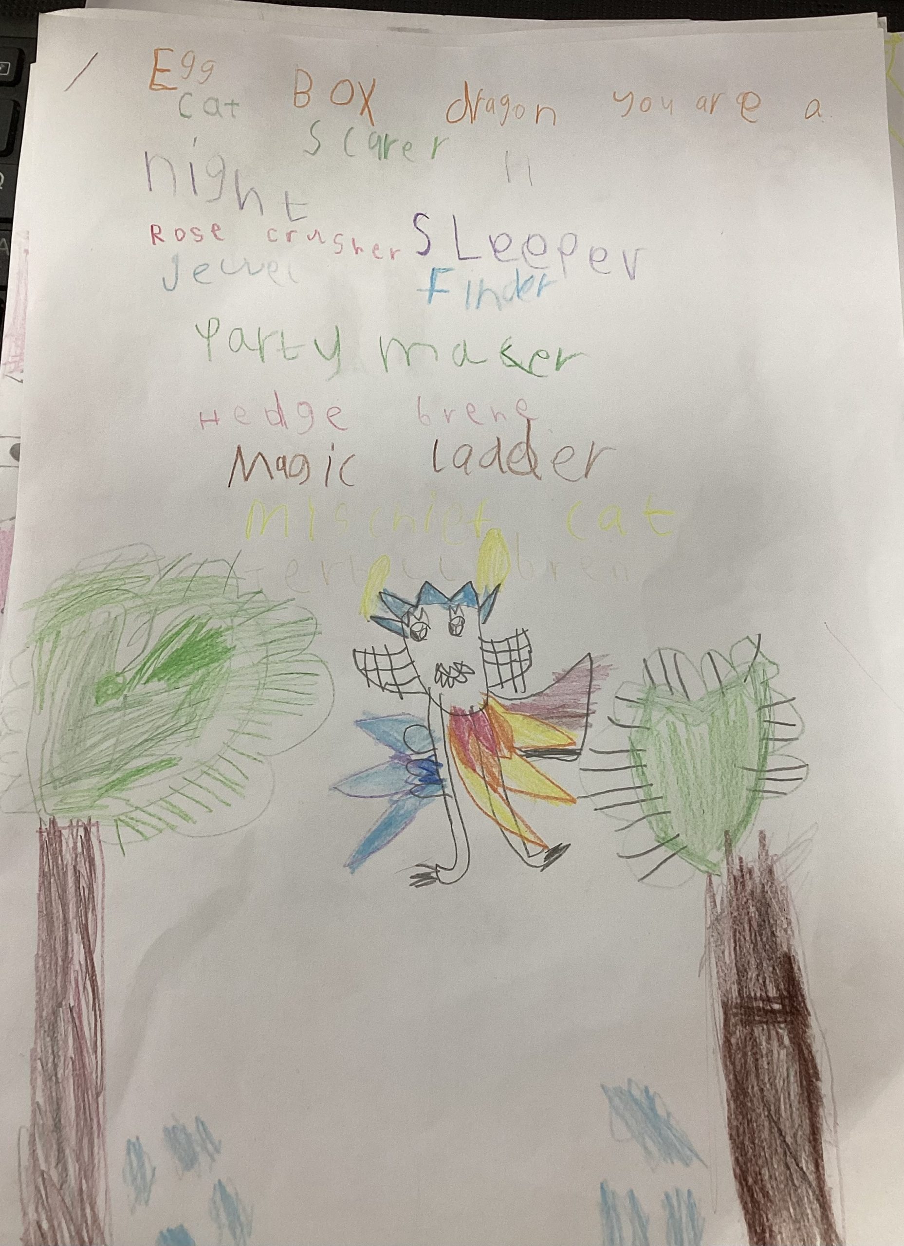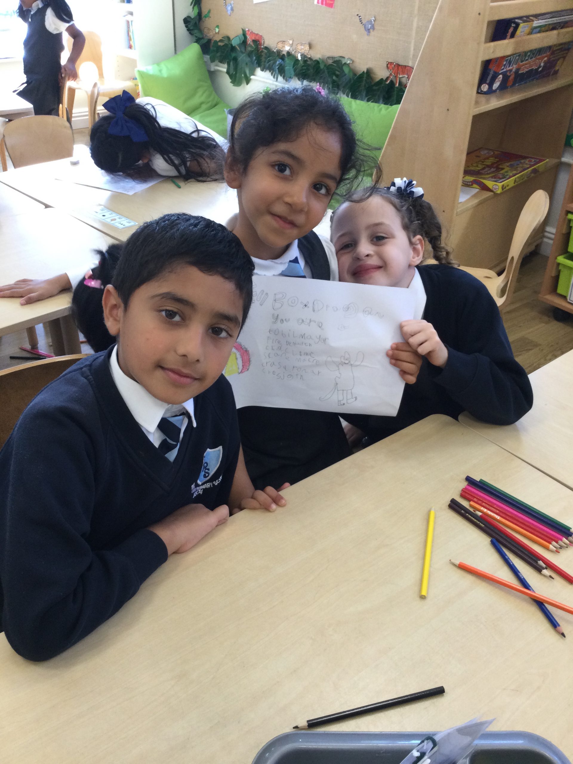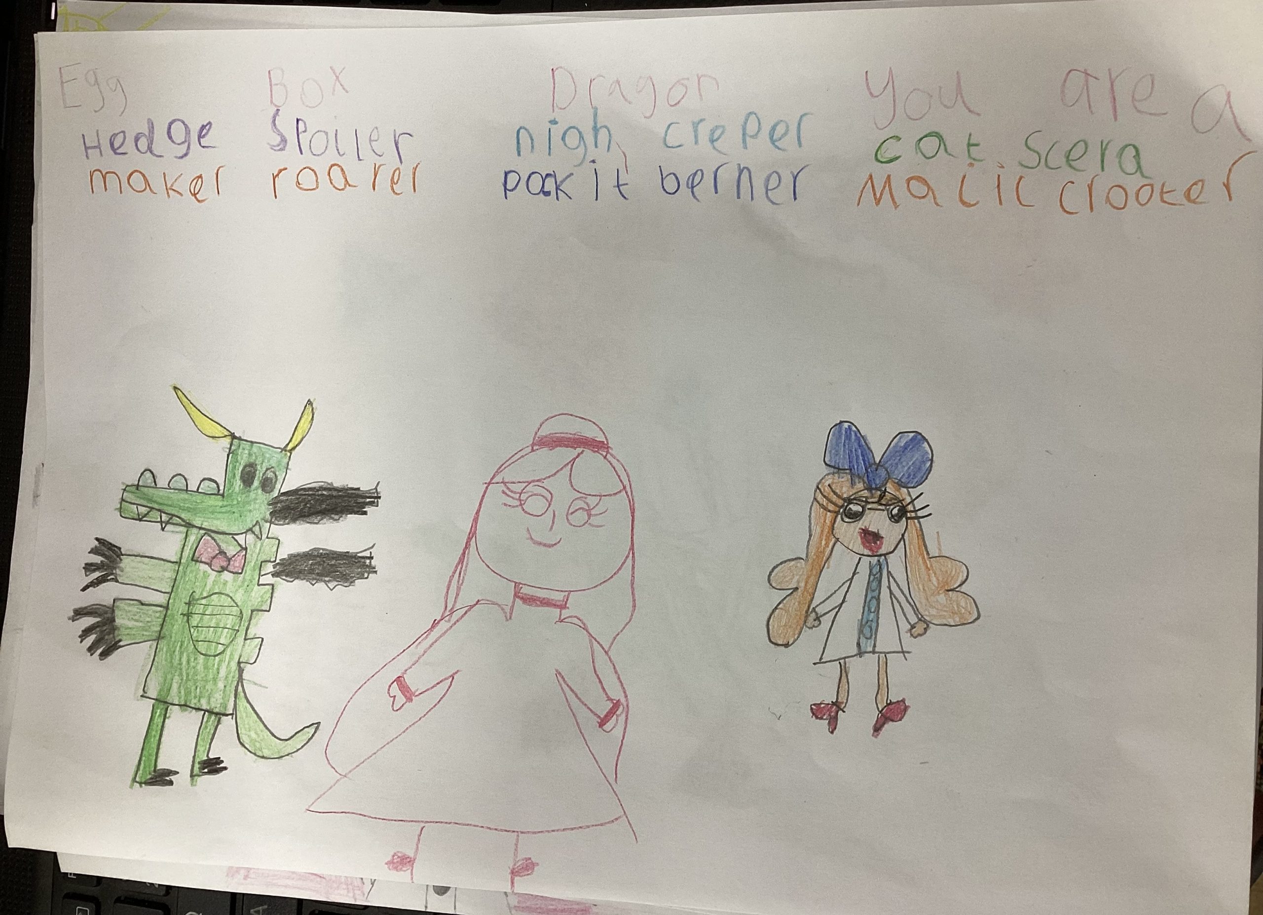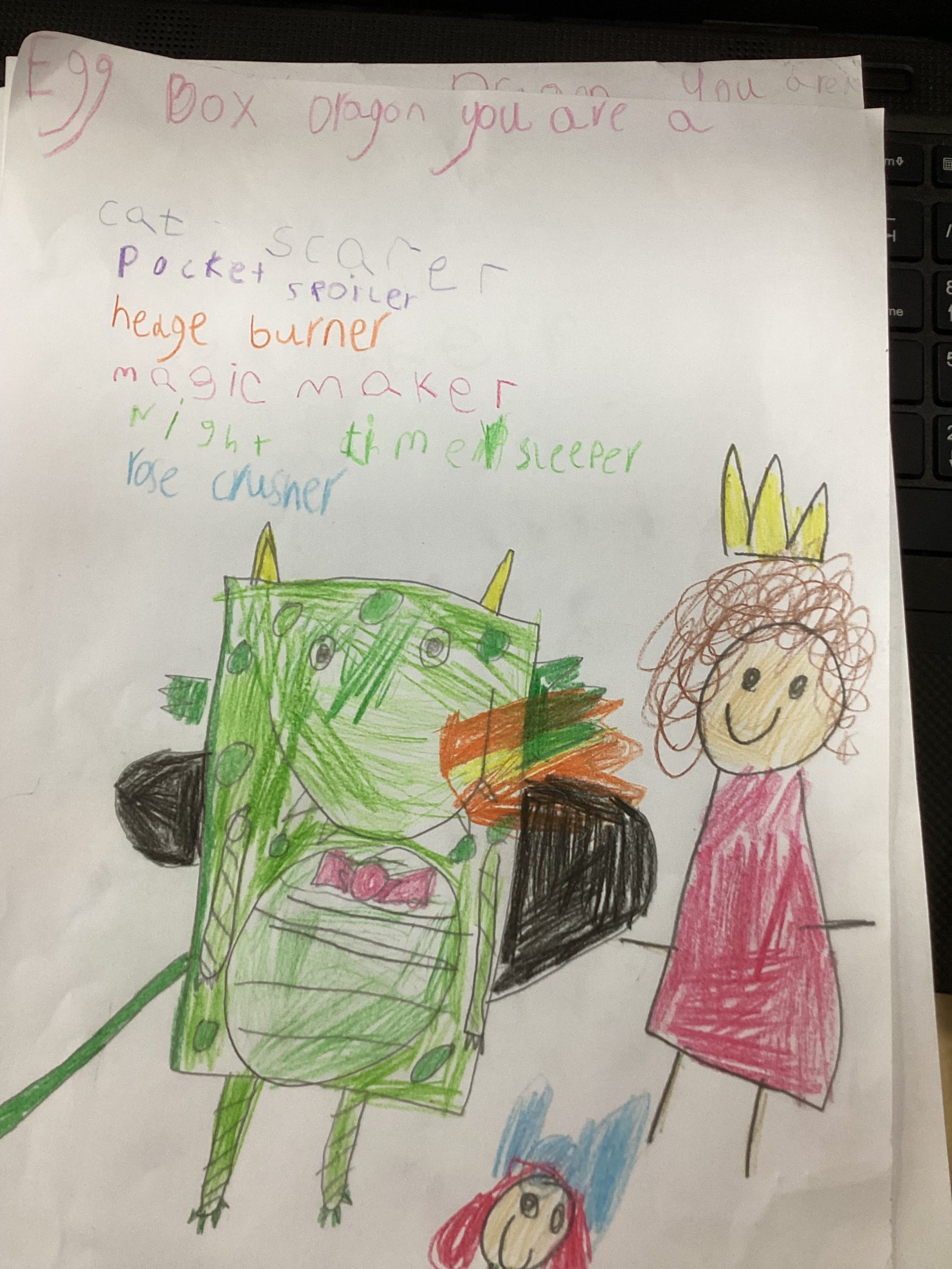 We worked so hard to create a kenning poem. We thought about what we know about Egg Box Dragon and used our knowledge of the suffix -er too. I am very proud of you all, good job!