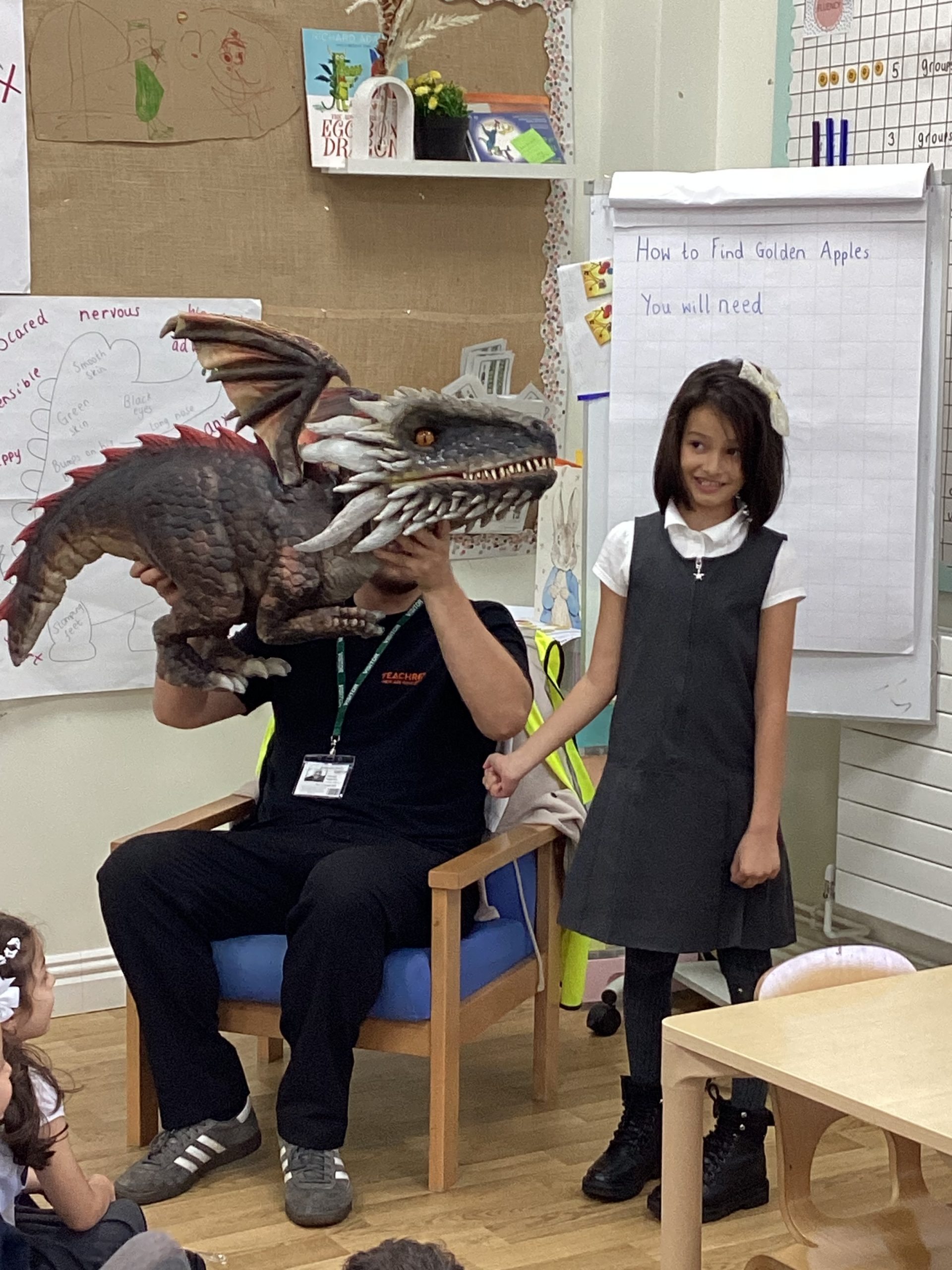 Today we had some very special visitors in our class. We were very brave and loved making friends with the dragons. We will be looking into the sky this week hoping to spot Roger!