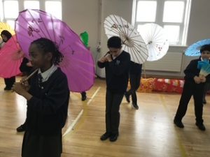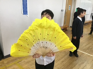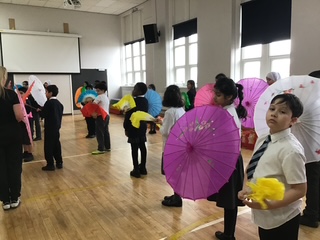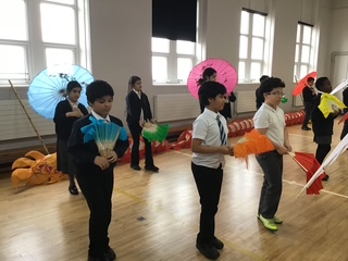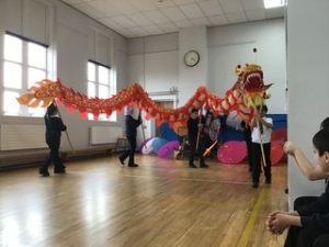 Yesterday, we took part in a dragon dance workshop and made moving horse using the colours of fire.