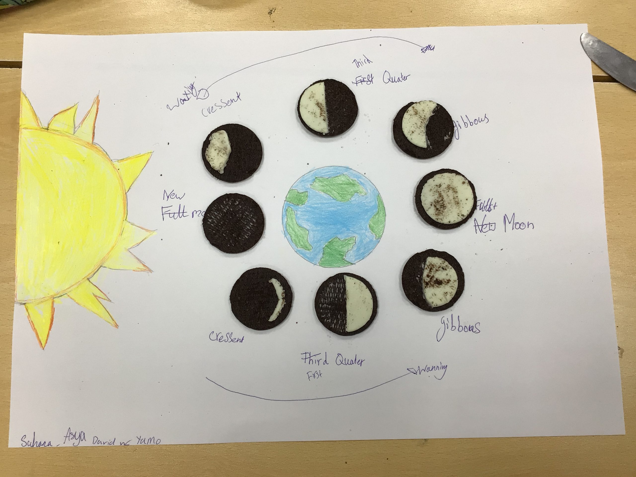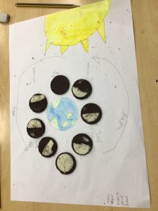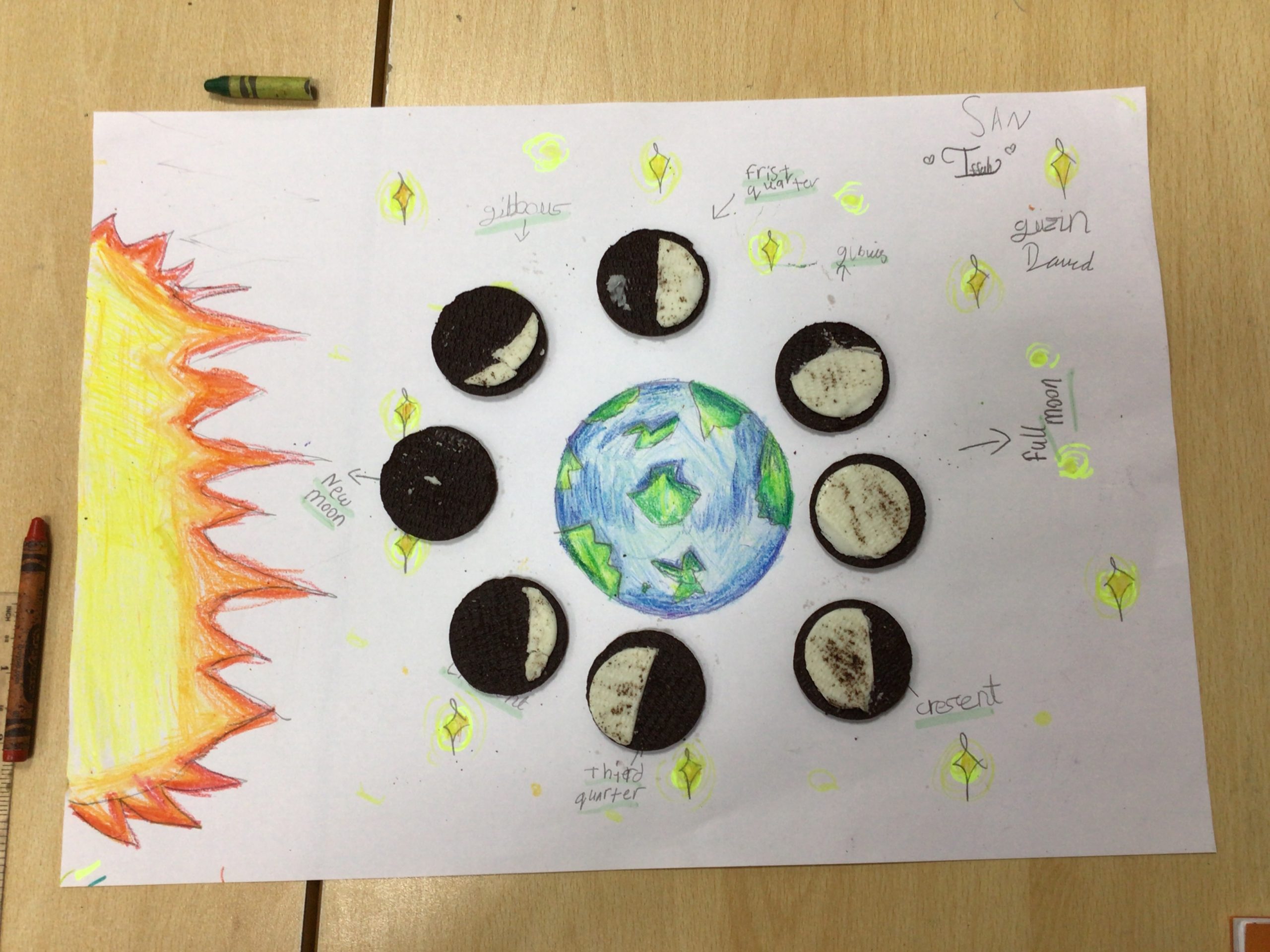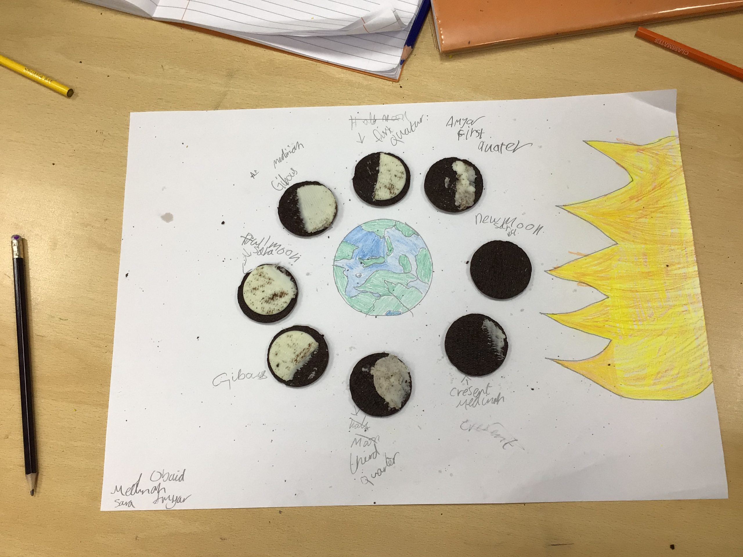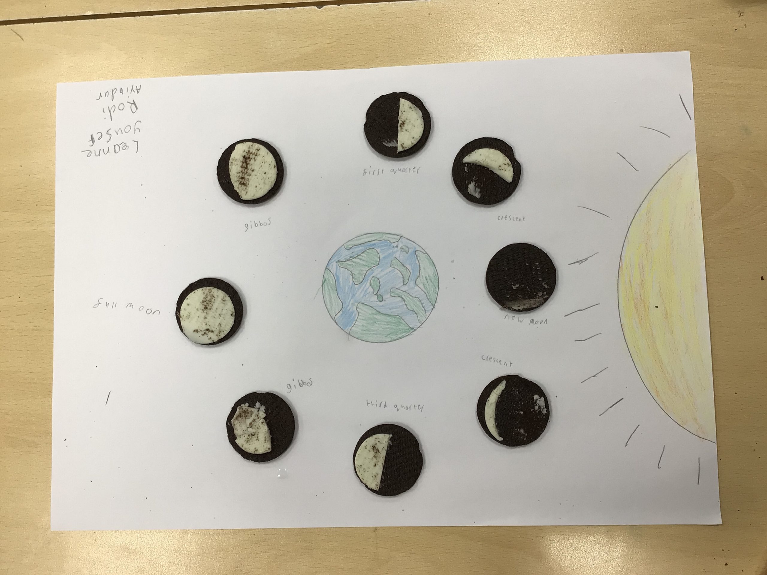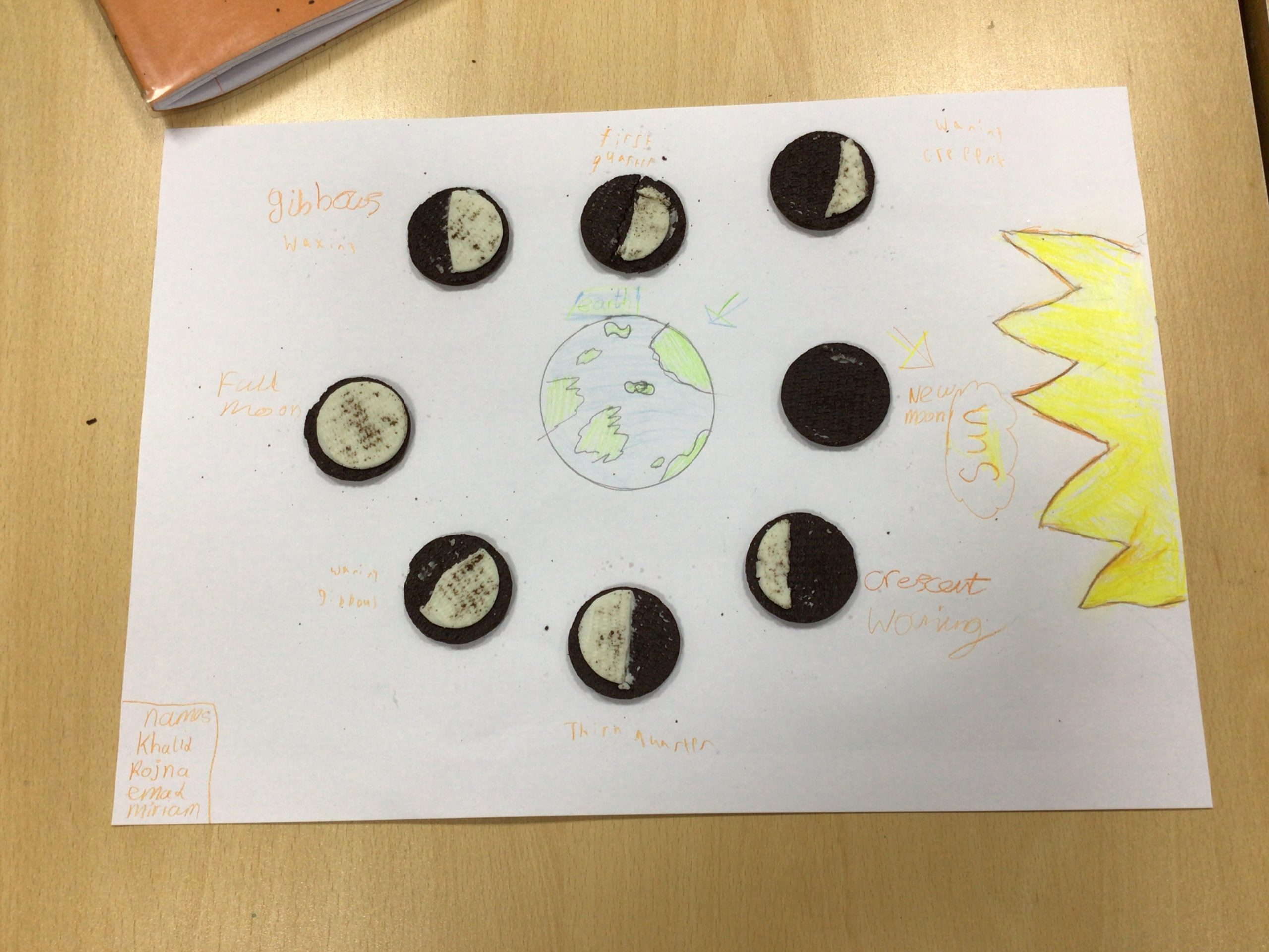 This week, we had a very fun science lesson where we created the phases of the moon using biscuits. Please ask us at home what the phases of the moon are! Can we spot them?